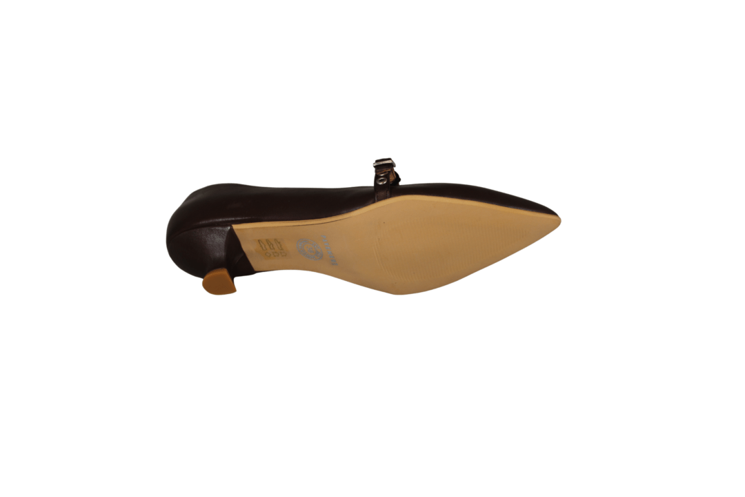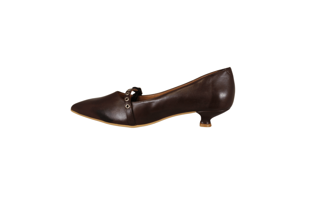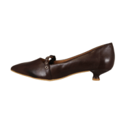 PAVEMENT ARIAN 1702-067 BROWN (221-2152). Fin enkelt og elegant pumps på en lille 3 cm hæl. Skoen er i skind både ind- og udvendig, hvilket er lækkert for bare tæer. Hen over vristen er der en tynd rem, med sølv huller og spænde.