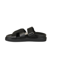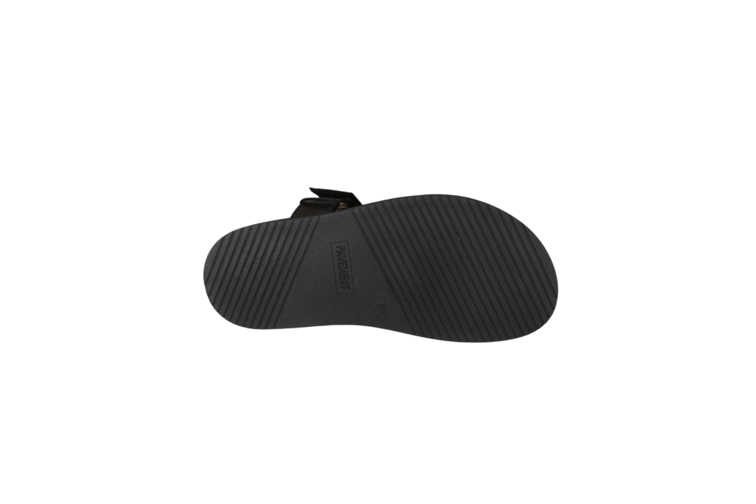 PAVEMENT MARU 22.248 SORT (442-1616). Flot og enkelt sort skind slippers. Sandalen er med fodseng, så foden hviler godt i sandalen. Den brede rem over foden, er med velro rem, så remmen kan regulers til. Ydersålen er med pu sål, så sandalen er let. En god sandal, der passer til det meste i gaderoben.