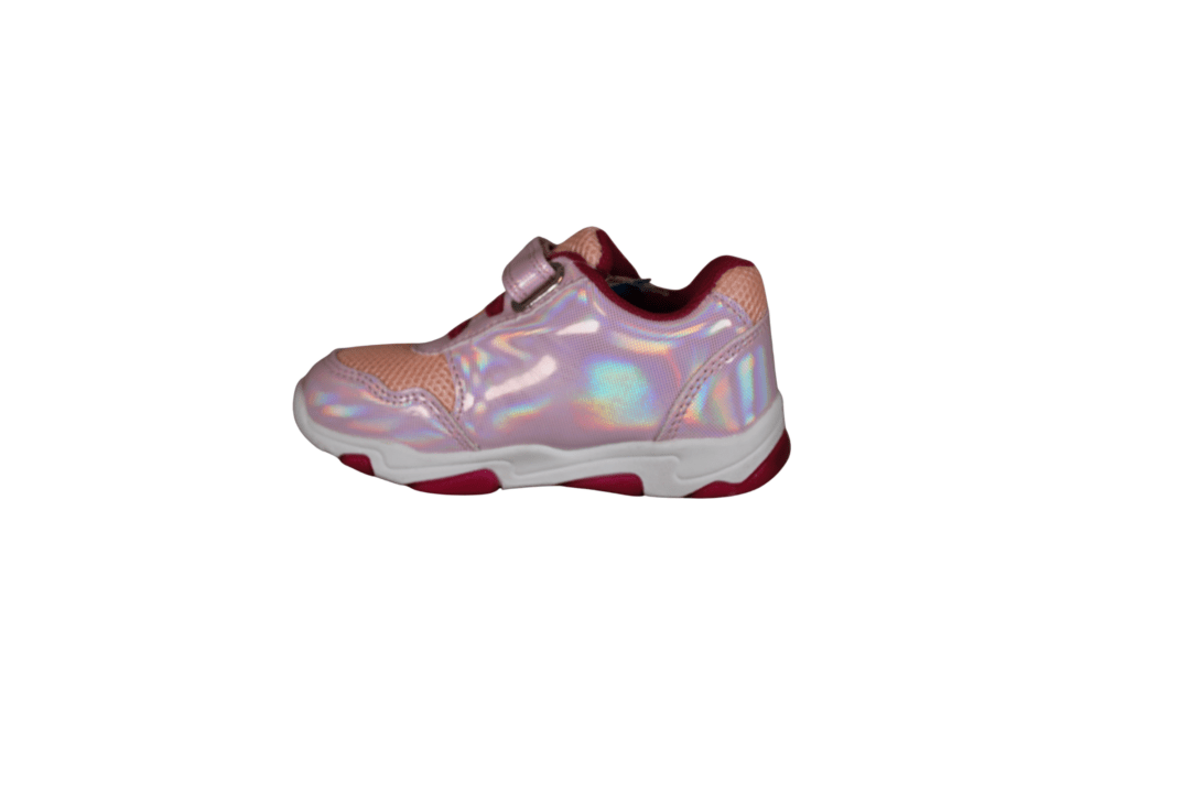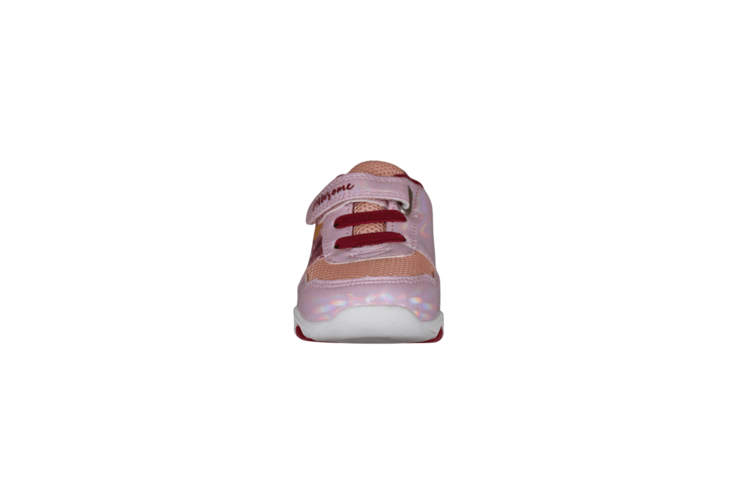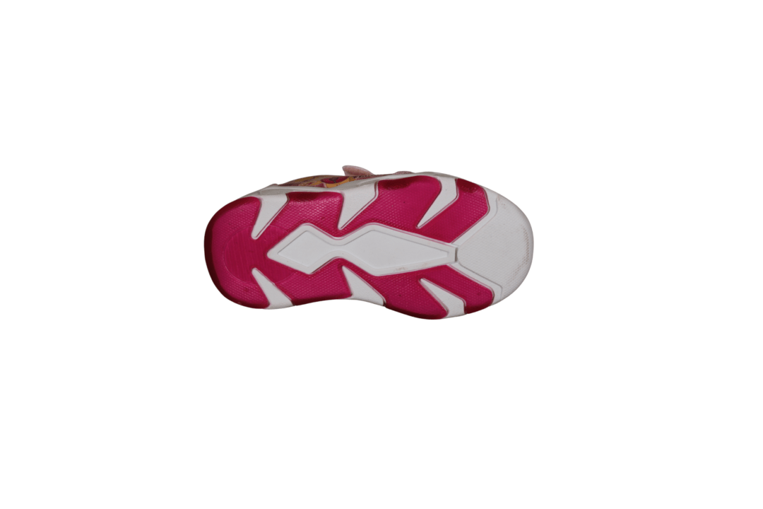 PAW PATROL PW009625 (741-3703). Smart kondisko med PAW PATROL tema – SKYE er på ydersiden af skoen. Sålen er hvid med lyserød bund, der blinker ved gang. Materialet udvendig er tekstil og vegansk, og foret med tekstil indvendig. Nem for barnet selv at tage på med velcrobåndet øverst.