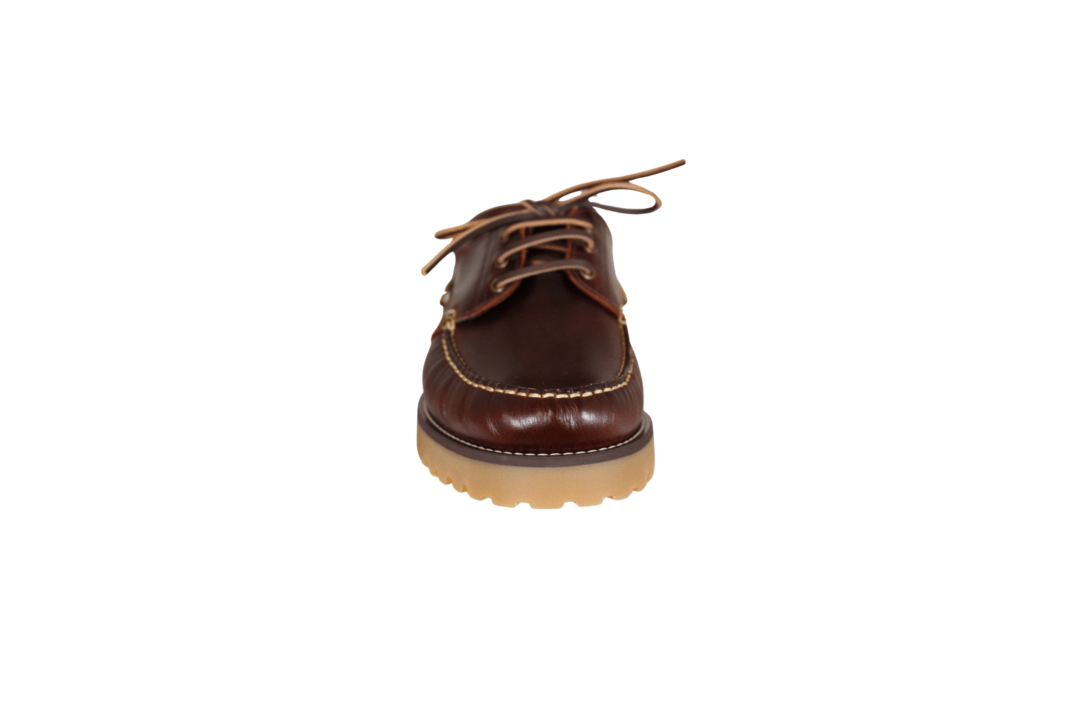 PLAYBOY CLAUDE PB100421 BRANDY LEATHER (121-0408). Elegant sejlersko til herre med mocassin syning ude langs snuden. Materialet er i skind udvendig, og foret med vegansk indvendig. Ydersålen er lavet i natur farvet gummi. Indvendig sål kan tages ud, hvis man har behov for sin egen.