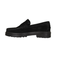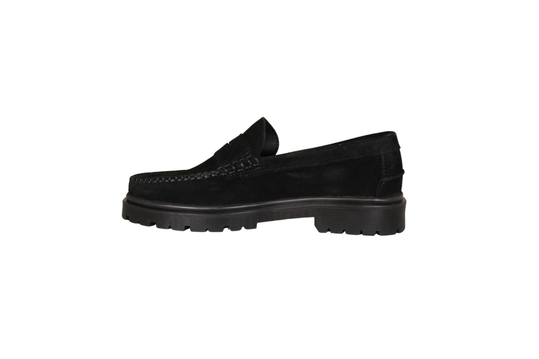 Smart loafers til herrerne fra Playboy. Skoen er lavet i sort ruskind, den har også en fin deltalje hen over forfoden. Skoen har en chunky gummisål. Passer både til hverdag og fest.
