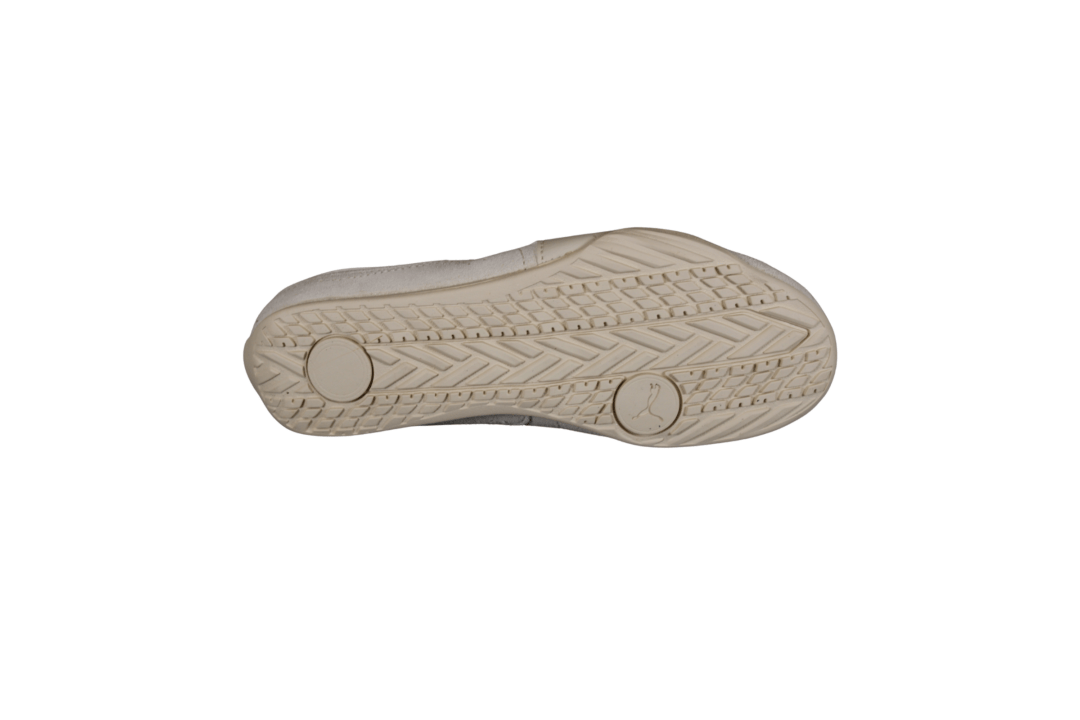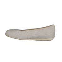PUMA CATCH SOLEIL BALLERINA SD 406310-02 SNOW WHITE (031-570). Smart ballerina model fra PUMA med puma striben hen ad siden. Indvendig i hælkappen sidder der en polstring, som holder foden bedre på plads i modellen. Materialet er skind (nubuck) udvendig, og foret med tekstil indvendig. Ude i snuden af skoen er der et PUMA logo. Slidsålen er lavet i gummi.
