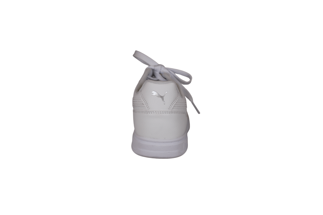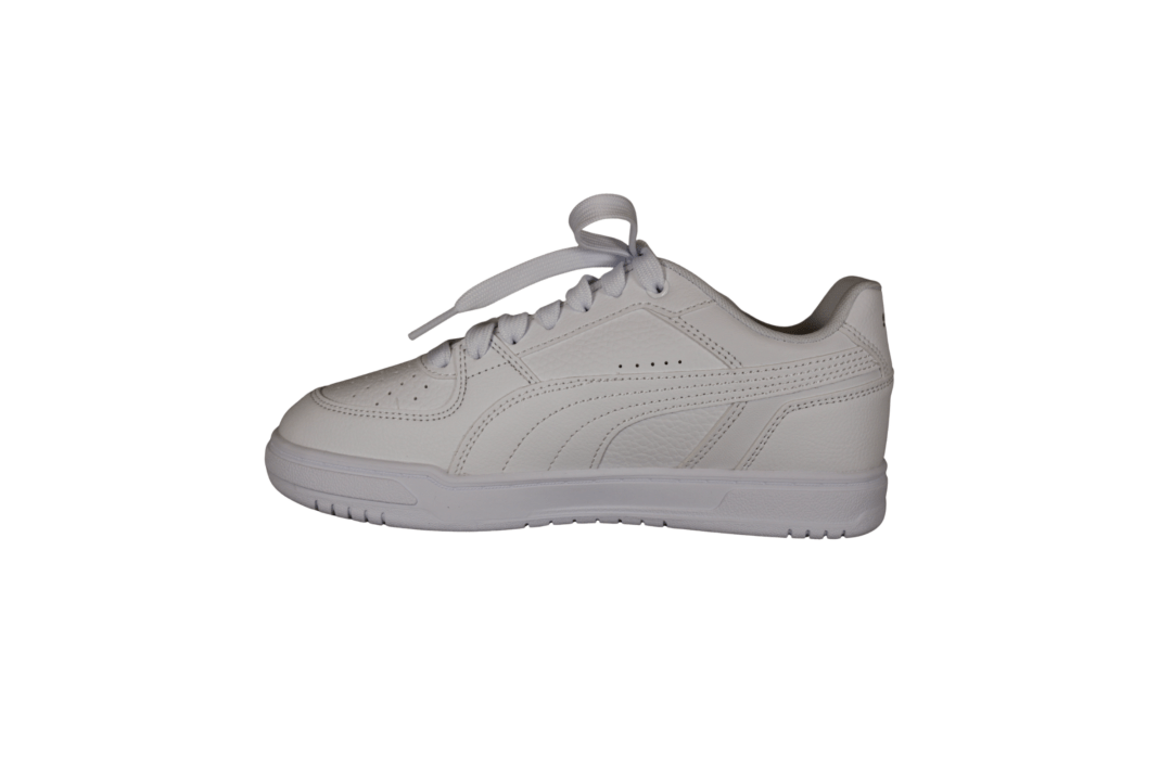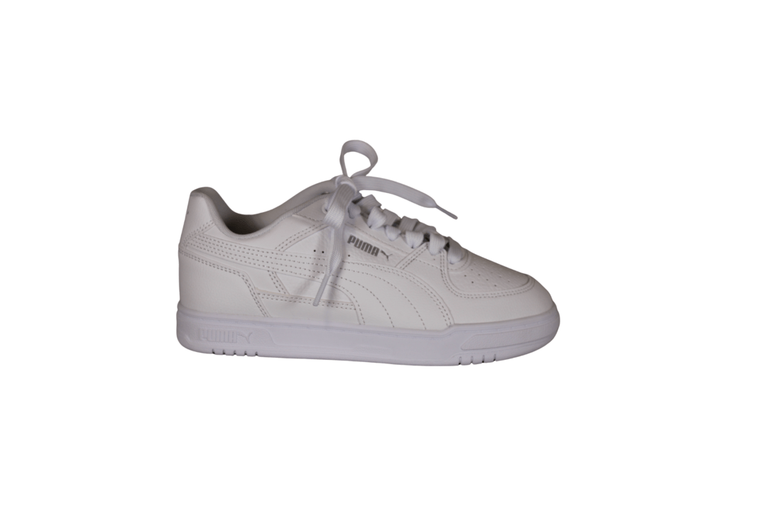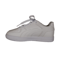 PUMA CAVEN III 404484 01 HVID/SØLV (741-3640). Klassisk hvid sneakers i vegansk materiale, der nemt kan rengøres. Skoen er foret med tekstil indvendig, og indvendig sål er udtagelig men dejlig blød at gå på. På siden af skoen er der lidt hvid mønster med et sølv PUMA logo. Klassisk og pyntelig til et hvert sæt tøj.