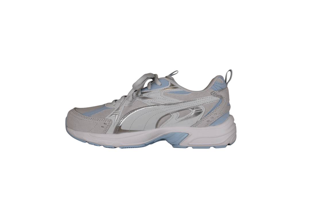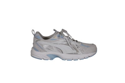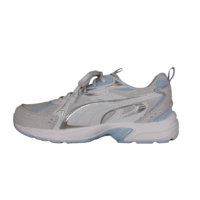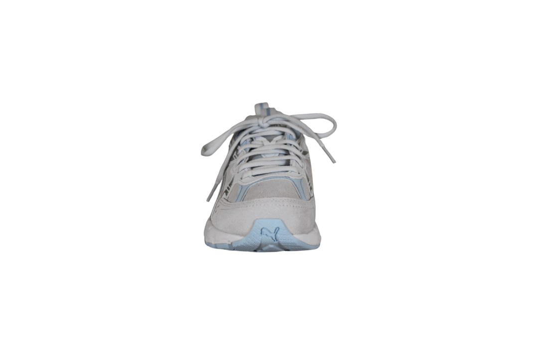 Smart Puma sneakers til damerne. Skoens overdel er i syntetisk materiale og tekstil, i grå, hvide og blå nuancer. Skoens kan spændes fast til foden med snørebånd. Indvendig er den foret med hvid tekstil og har en forever better blå tekstil sål. Mellemsålen er af hvid gummi og har en blå slidsål.
