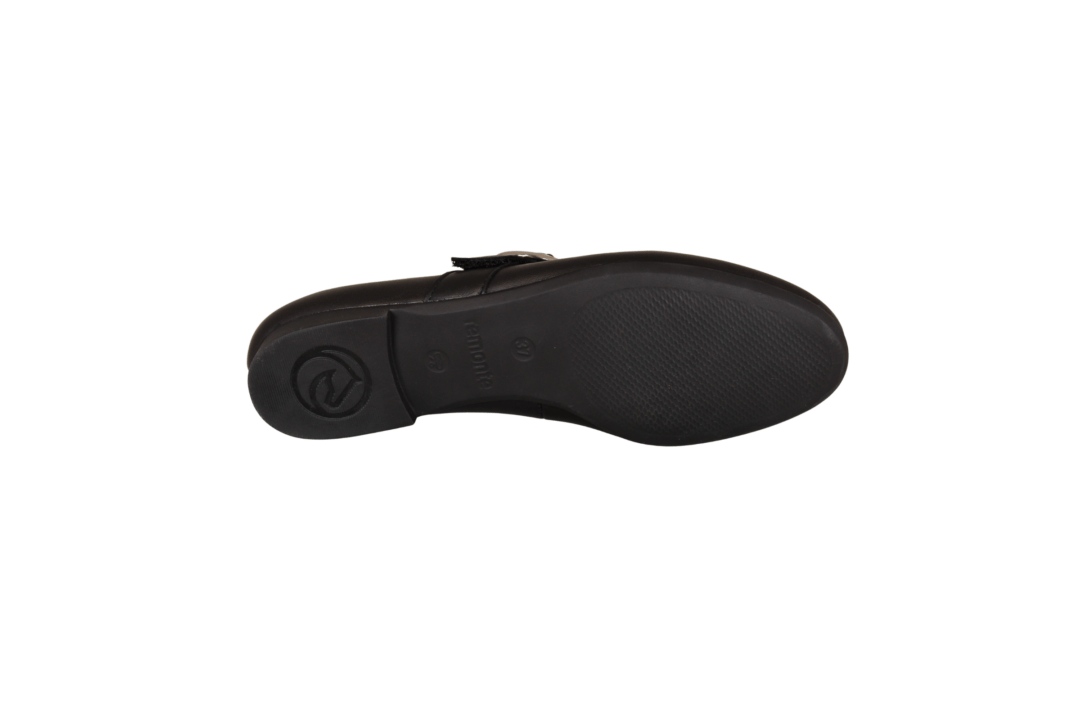 REMONTE D0K14-00 SORT (033-566). Klassisk loafers i ekstrem blød materiale. Hen over vristen er der en rem med en sølv spænde til pynt – selve remmen spænder du med velcrobånd. Udvendig er skoen lavet af skind, og foret med tekstil indvendig. Indlægssålen er god polstret og betrukket med skind. Ydersålen er lavet i gummi, med en lille hæl.