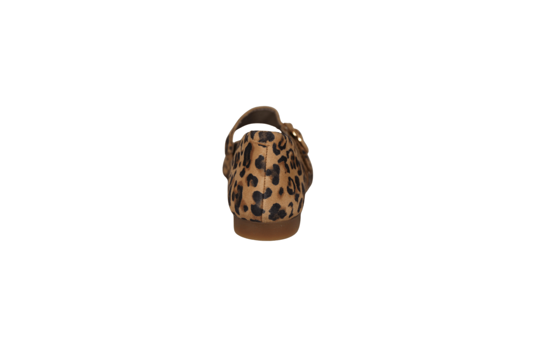 REMONTE D0K14-90 MULTI (033-567). Klassisk loafers i ekstrem blødt leopard materiale. Hen over vristen er der en rem med en guld spænde til pynt – selve remmen spænder du med velcrobånd. Udvendig er skoen lavet af skind, og foret med tekstil indvendig. Indlægssålen er god polstret og betrukket med skind. Ydersålen er lavet i naturgummi, med en lille hæl.
