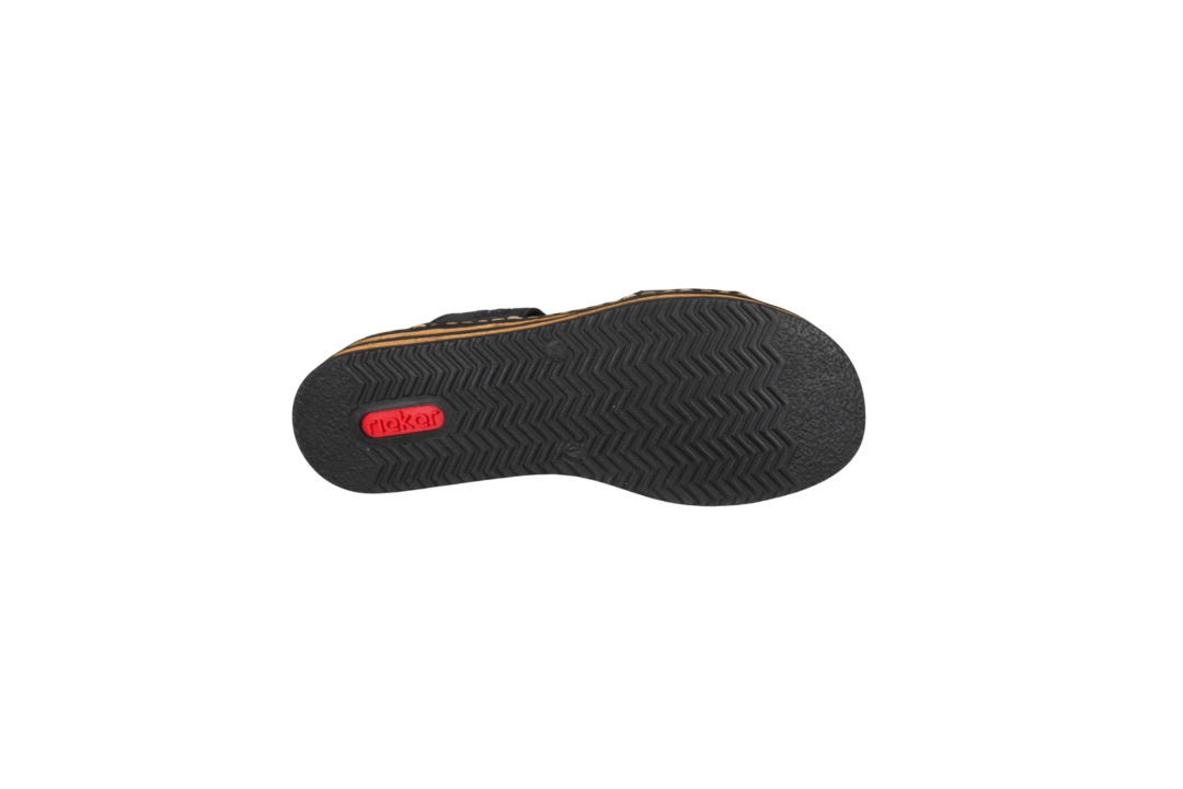 RIEKER 62936-14(041-181). Flot blå sandal med 2 velcro remme og en kilehæl på 4 cm. Sålerne er med Rieker´s antistress såler, så de er bløde at gå med. En god sandal til daglig brug.