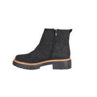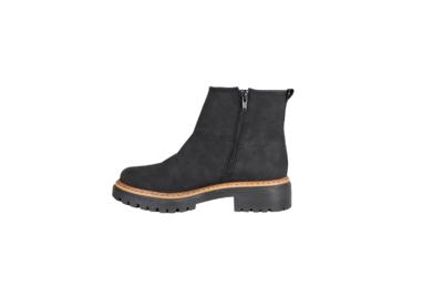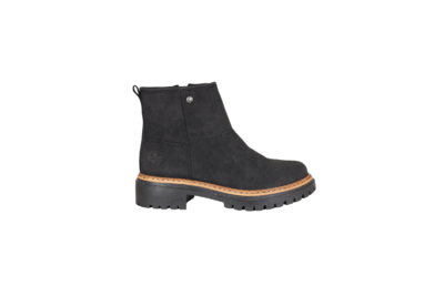 Sort kort vinterstøvlen med kraftig smart sål. Rundt i kanten af sålen er der en smart brun kant, der giver et pift til støvlen. Materialet er vegansk udvendig, og foret med sort blød tekstil indvendig. Sålen er god mønster, så perfekt til de kolde og glatte vinterdage.