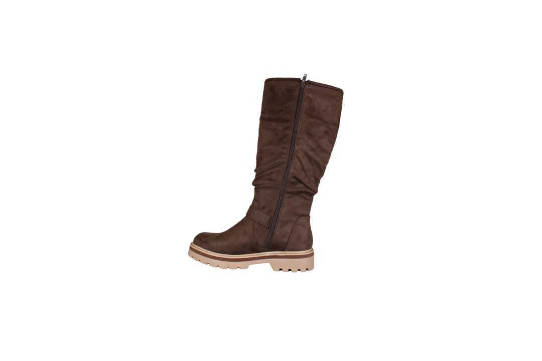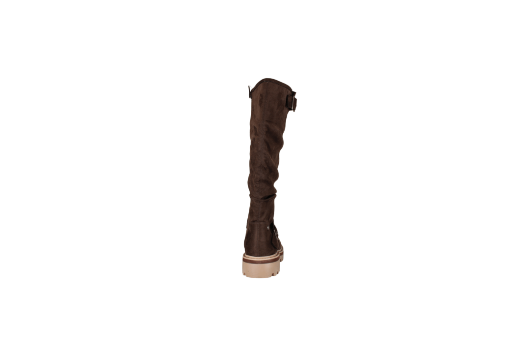 RIEKER 91592-25 BRUN (051-367). Lang støvlet fra RIEKER i brun med en smart chunky sål. Materialet er tekstil både ind- og udvendig. Der er 2 spænder på ydersiden, som giver et smart look.