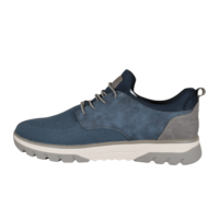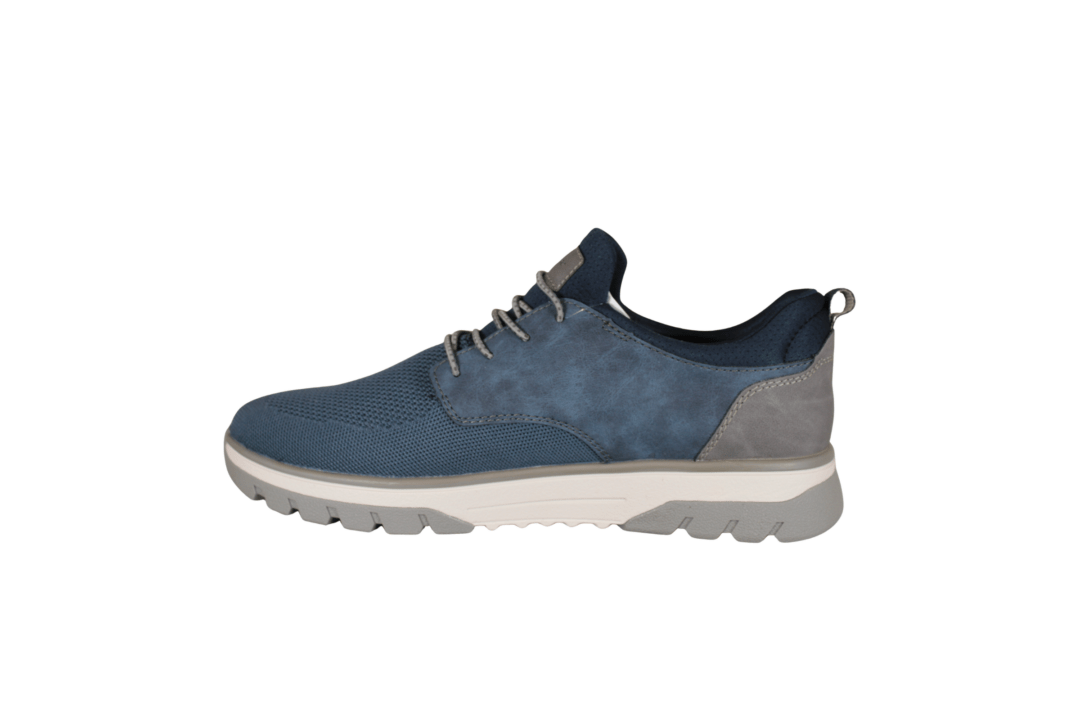 RIEKER B9352-14 BLÅ (163-0619). Flot sart blå tekstil sko med grå elastik snøre bånd (pynte). Skoen er med ekstra vidde, så der er god plads i skoen. Er til at hoppe i, som en sokmodel. Indersålerne er polstert Soft og kan tages ud af skoene. God til daglig brug eller til festerne.