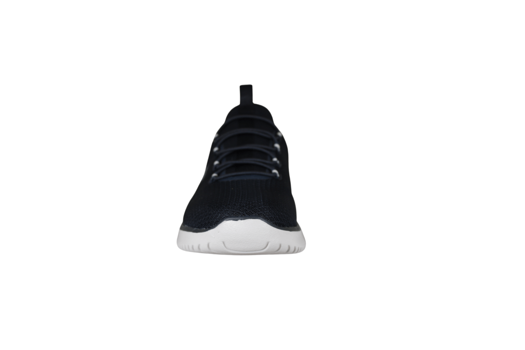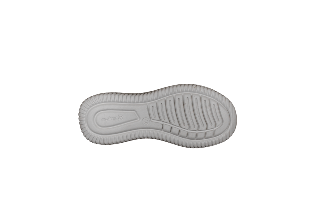 RIEKER B9655-14 BLÅ (163-0618). Blå sneakers med en let og blød fleksibel sål. Skoen er lavet i tekstil både ind- og udvendig. Hen over vristen er der elastik snørebånd. Slidsålen er lavet i grå PVC.