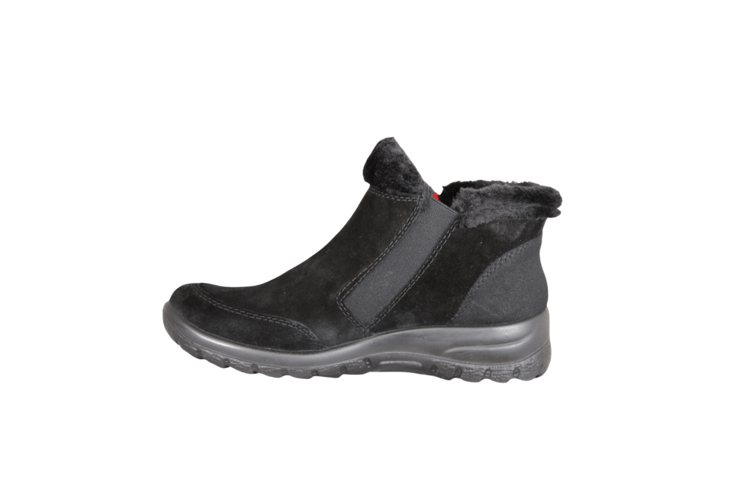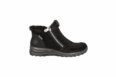 RIEKER L7188-00 (054-824). Fin kort foret skind støvle med pels kant, og en lynlås på ydersiden og Ready2, så den er nem at hoppe i. Støvlen er med RiekerTex, så den er vind- vandtæt, samt åndbar. Inder sålen ligger løst i og er med antistress, så den er god blød at gå med. En let og fleksibel støvle, god til daglig brug.