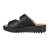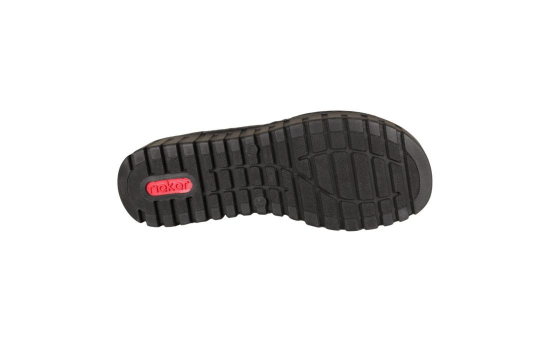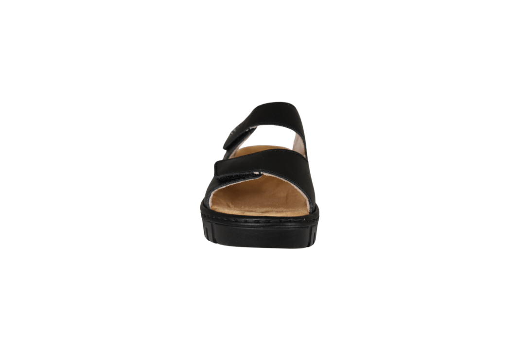 RIEKER V1392-00 SORT (041-824). RIEKER slippers/sandal i helt enkelt sort . Sandalen er lavet i vegansk materiale udvendig, og den har tekstil inderforing. Ydersålen er lavet i gummi. Hælen er 4 cm høj, og ved forfod er den 2 cm høj. Sandalen har 2 justerbar velcrobånd, så kan justeres godt til foden.