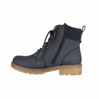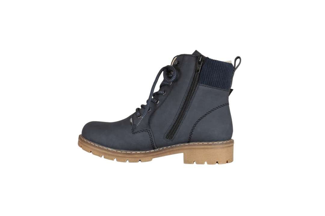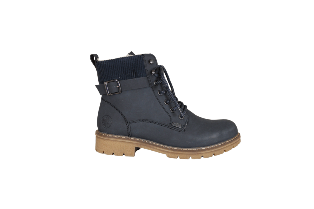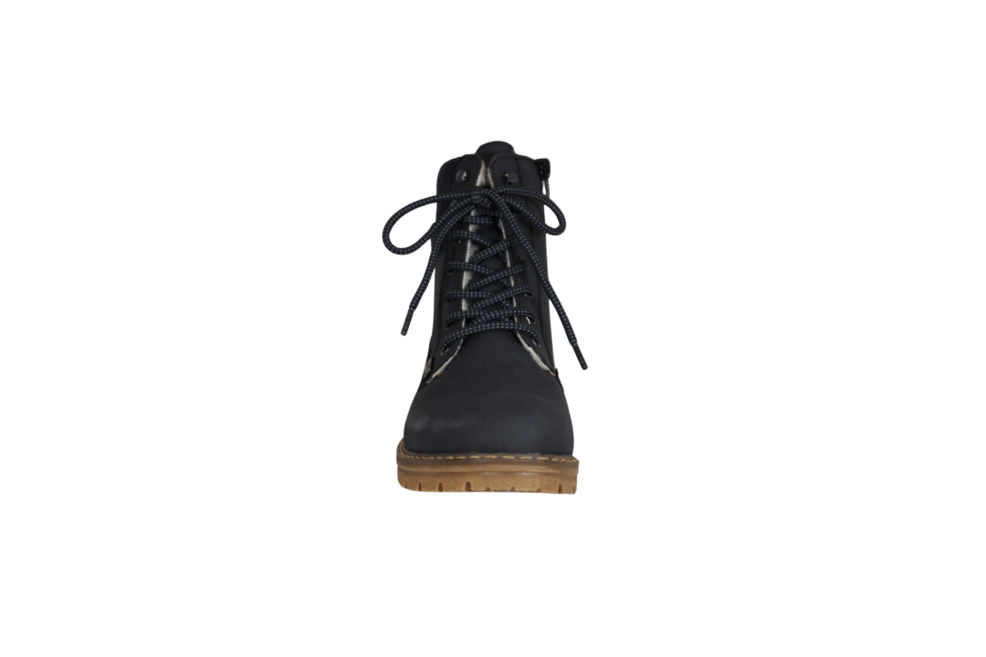 RIEKER Y9102-14 BLÅ (525-1081) Blå Rieker støvle til damer med for. Støvlen har en lynlås på indvendig side og ellers spændes den fast til foden med snørelukning. På siden er der en spænde som pynter flot. Sålen er lavet i gummi, og har et godt greb til jorden. Yder materialet er lavet i syntetiske materialer. Støvlen har en tex-membran, så den er kraftig vandafvisende.