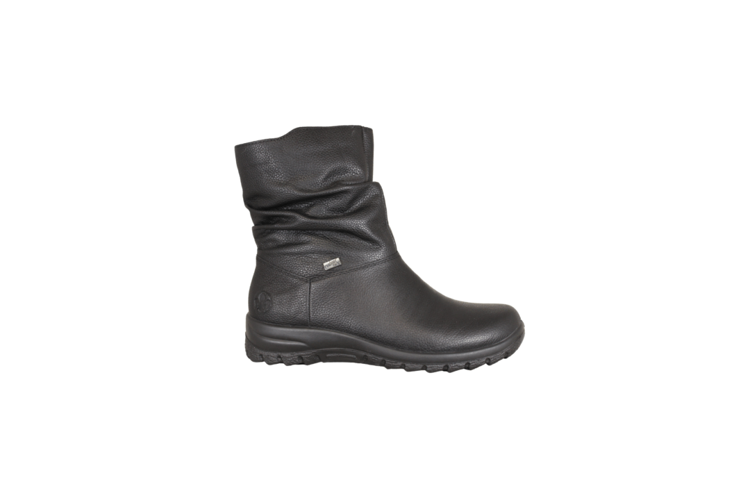 RIEKER Z7193-00 SORT (525-1074). Helt enkelt 3/4 skind støvle med RIEKER-TEX, foret med uld, så dejlig lun. Støvle med god plads i, og med en lynlås, så den er nem at komme i. Let og fleksibel. En rigtig god støvle til de kolde dage, daglig brug.