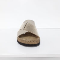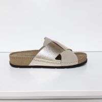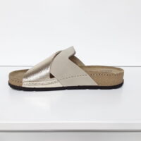 ROHDE 5410-29 GOLD (041-455). Guld skind slippers med et kryds over forfoden, så sandalen sidder godt på foden. Indersålen er polstret, så sandalen er blød at gå med. En meget let og fleksibel sandal, som er god til daglig brug, hjemmesko eller som sandal.