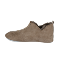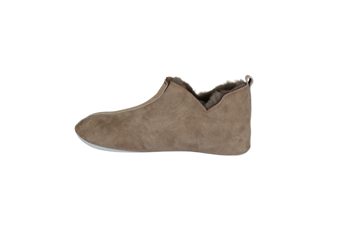 SHEPHERD OF SWEDEN LINA 6202 STONE (057-697). Luksus hjemmesko i lammeskind med læder sål. Stonefarvet med en stribe foran og bagpå hælkappen, lille rundt logo på hælen. En rigtig god hjemmesko, til de kolde dage.