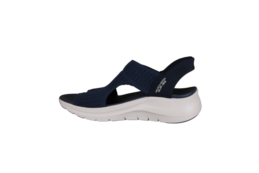 SKECHERS 119466/NVY ARCH FIT 2.0 (425-1197). Mørkeblå farvet sandal med blød tekstil materiale hen over foden – som også er dejlig luftigt for foden. Hælremmen er lavet med SLIP-INS hælen, hvilket betyder den er dejlig nem at komme ned i. Ydersålen er ARCH-FIT, hvilket betyder der er svangstøtte i sålen. God sandal til både hverdag og ferier.