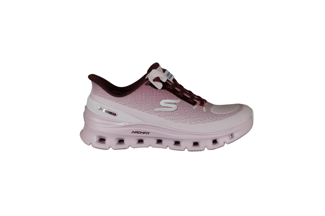 SKECHERS 150730/LVMT ARCH FIT GLIDE-STEP PRO (741-3644). Smart vegansk rosa farvet Slip-Ins med bordeaux røde nuance. Skoen har elastik snørebånd. Inder sålerner er med Air-Cooled Memory Foam såler, så de er gode bløde at gå med. Glide Step er mellemsålen med stødabsorbering. Nem at hoppe i med Slip-Ins. Kan vaskes på lave grader i maskinen, derefter lufttørres. En god sko til daglig brug. Meget let og fleksibel.