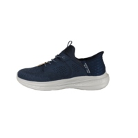 SKECHERS 2108897NVY SLADE CASTER (741-3649). Flot vegansk blå SLIP-INS, med pynte elastikker, nem at hoppe i, uden at bruge et skohorn. Kan vaskes i vaskemaskinen på lave grader og skal lufttørres. Inder sålerne er med memory foam, så skoen er bløde at gå med. En meget let og fleksibel sko, god til daglig brug.
