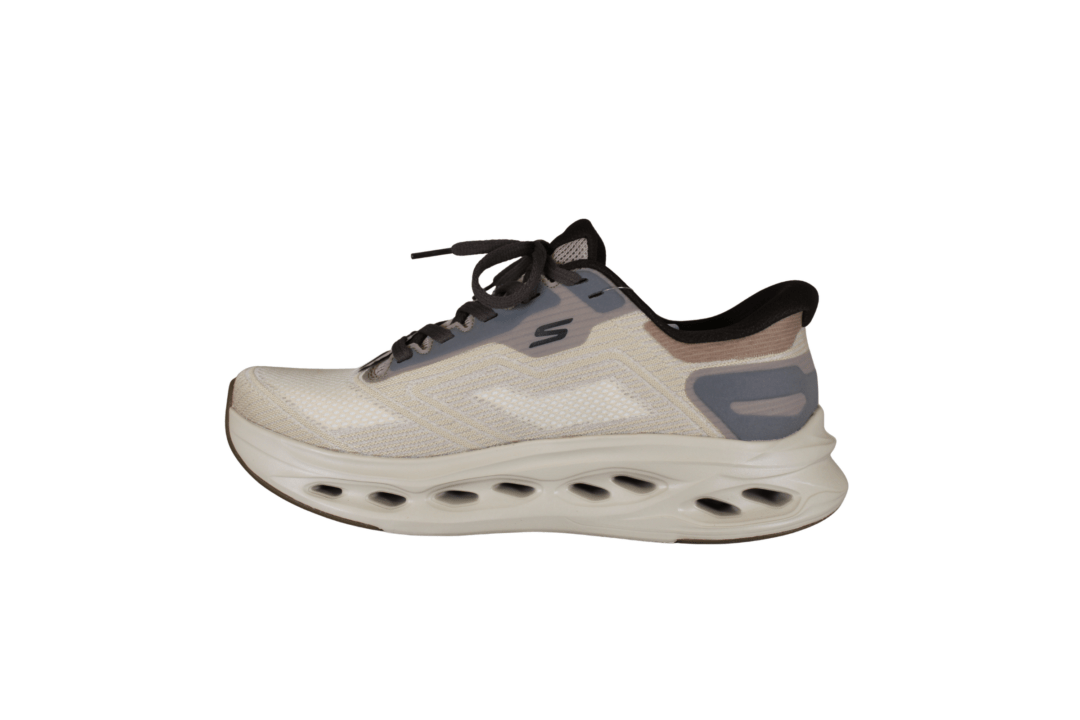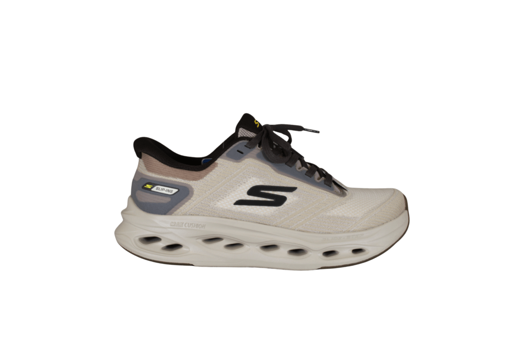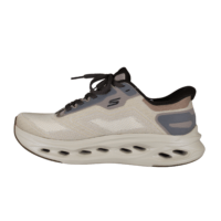 SKECHERS 220415/TPE MAX CUSHIONING GLIDE-STEP (741-3780). Taupe farvet sneakers der er nem at komme i både med elastiksnørebånd og SLIP-INS hælen. Skoen er lavet i tekstil både ind- og udvendig. Sålen er den gode bløde og stødabsorberende MAX CUSHION sål. Skoen kan tåle vaskemaskine på 30 grader – dog IKKE tørretumbler.