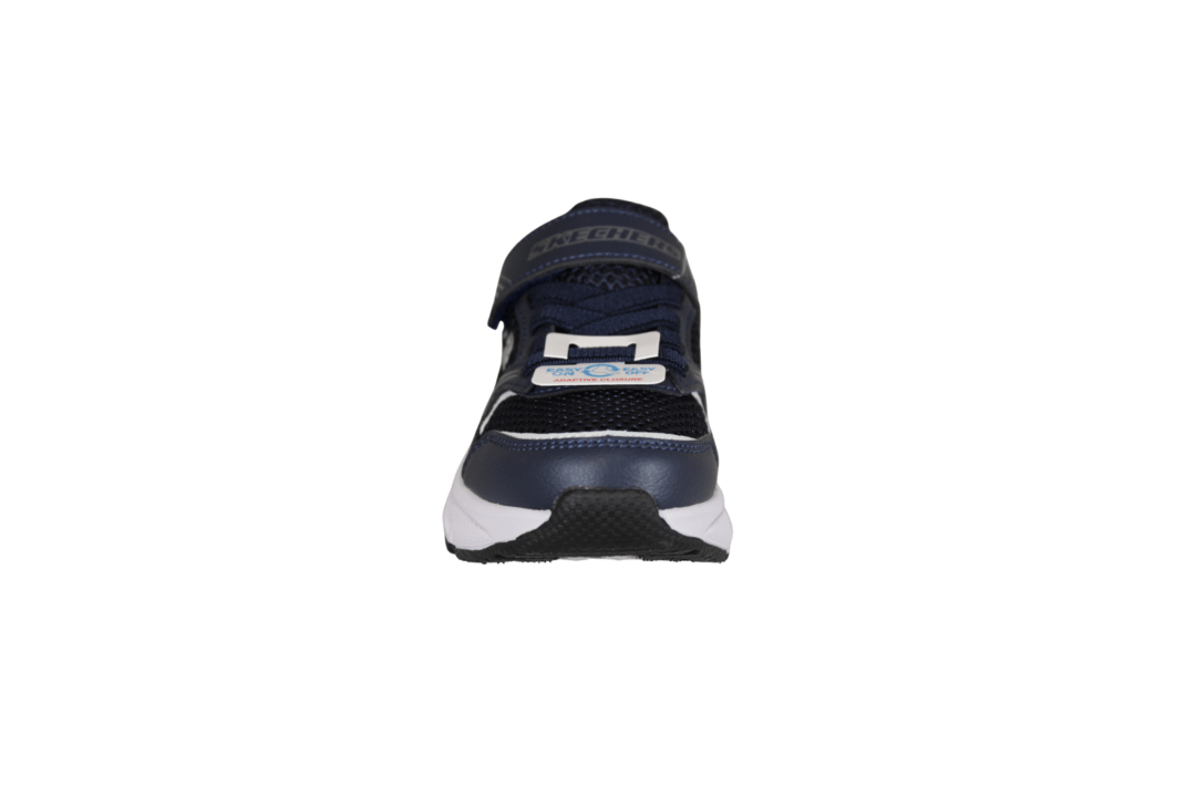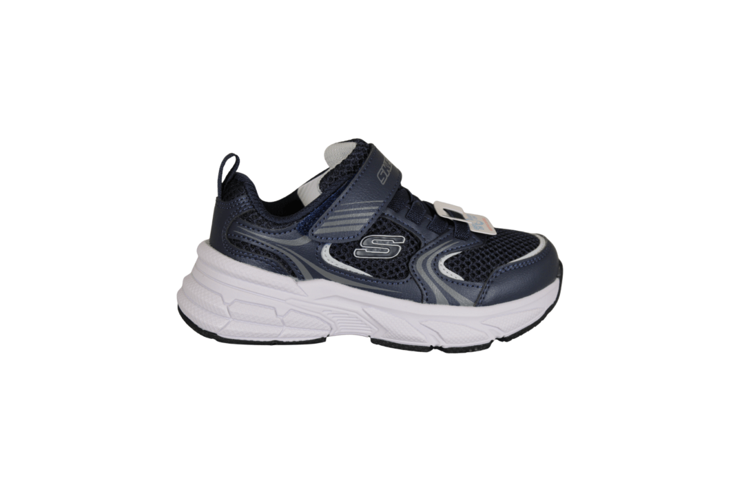 SKECHERS 403857L/NVY RETRO-GRAPH (741-3711). Mørkeblå sneakers med en smart chunky sål. Skoen er lavet i tekstil og vegansk udvendig og foret med tekstil indvendig. Hen over vristen er der et velcrobånd, så barnet nemt selv kan få skoen på. Slidsålen har ekstra sorte slidmærker, så man står bedre fast.