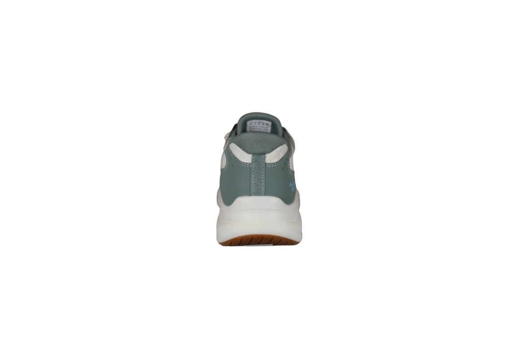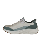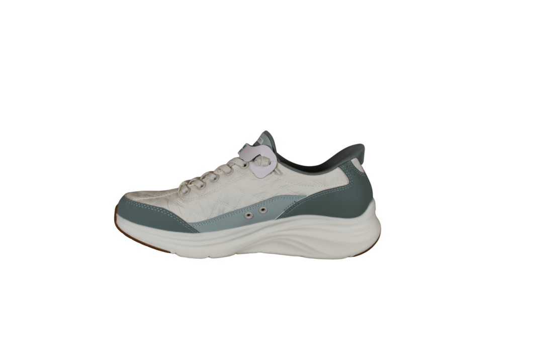 SKECHERS COZY 150404/SAGE (035-035). Hvid sneakers med sage (grøn) kant langs sålen, hælen og i indsteppet. Modellen er med Slip-Ins, så du hopper lige i den uden brug af hjælpemiddler. Indersålerne er med Air-Coolde memory Foam såler, så skoen er god bløde at gå med. Kan vaskes i maskinen på lave grader og derefter luftørres.