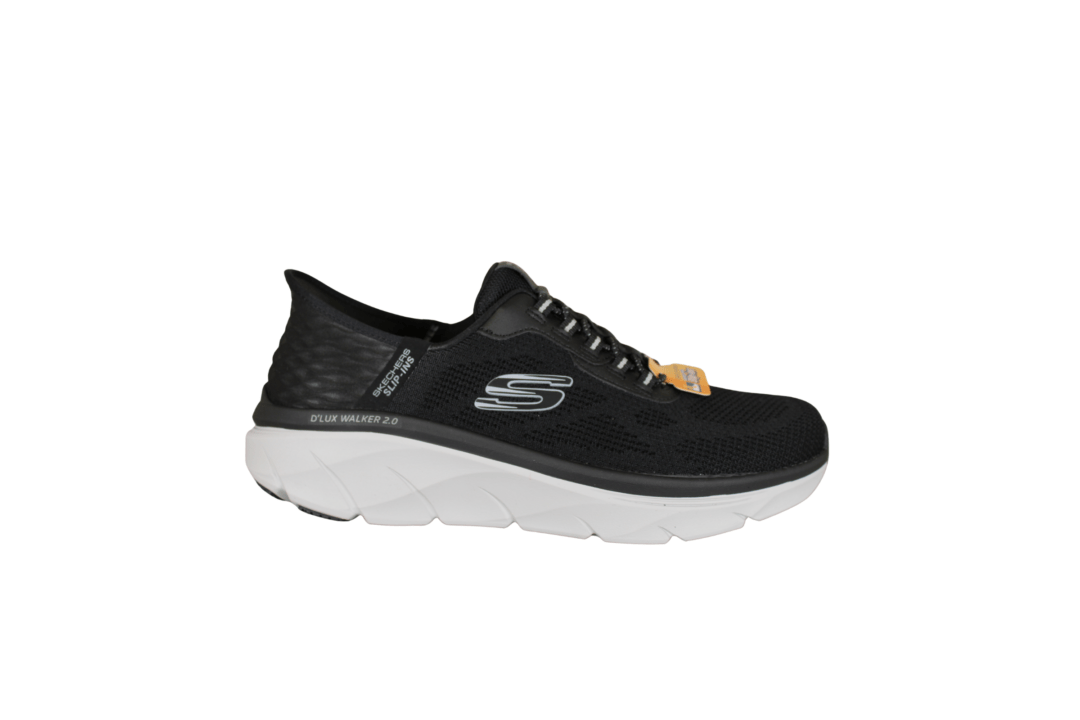 SKECHERS D´LUX WALKER 2.0 232446/BKGY (741-3213). Sort vegansk Slip-Ins hands free med grå sål, og pynte snørebånd. Nem at smutte i, uden brug af hjælpe midler. Inder sålerne er med Air-Cooled memory foam såler, så skoene er dejlig blød at gå med. En model, hvor der er god plads til forfoden og god til daglig brug, let og fleksibel.