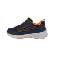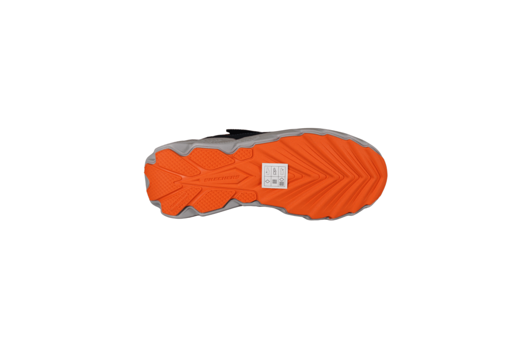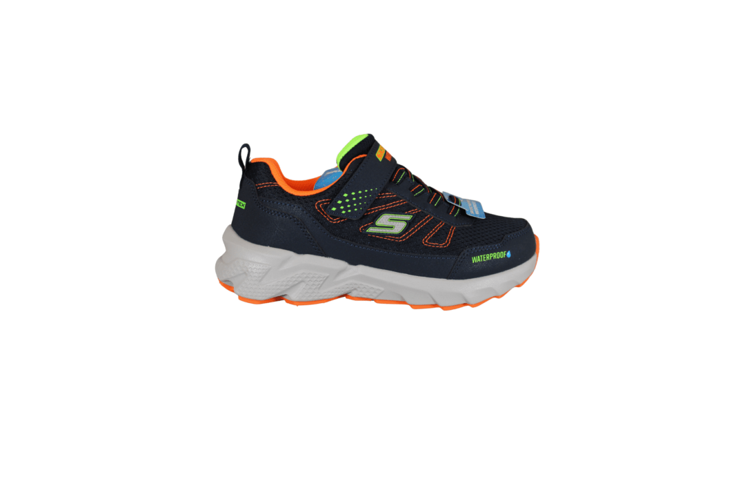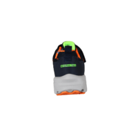 SKECHERS ELITE SPORT TREAD AQUA VEK 406334L/NVOR (065-809). Flot mørkeblå kondisko med orange og neon grøn detaljer. Modellen er vandtæt, kan stadig åndes i, da det er med tex. Nem at hoppe i med velcro rem og elastik snørebånd. Indersålerne er polstret, så skoen er blød at gå med. Ydersålerne er gode kraftige, så man står godt fast. En meget let og fleksibel sko, god til daglig brug.