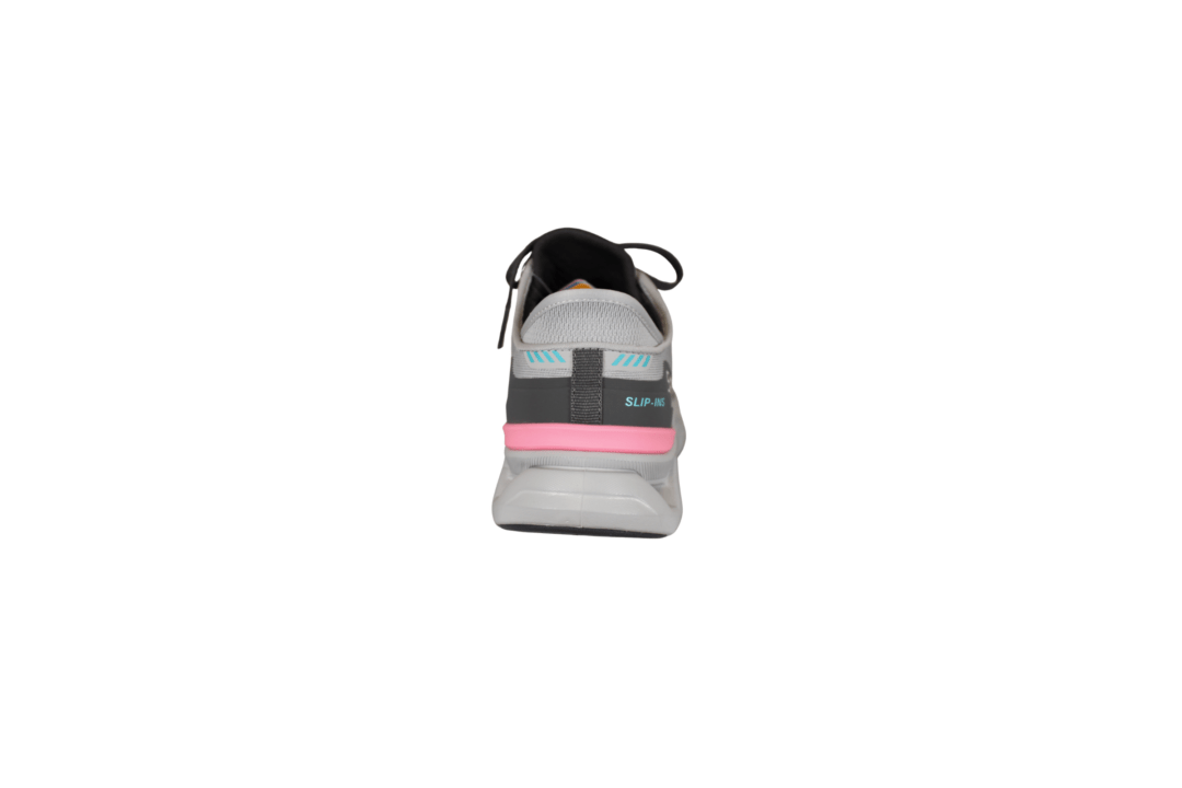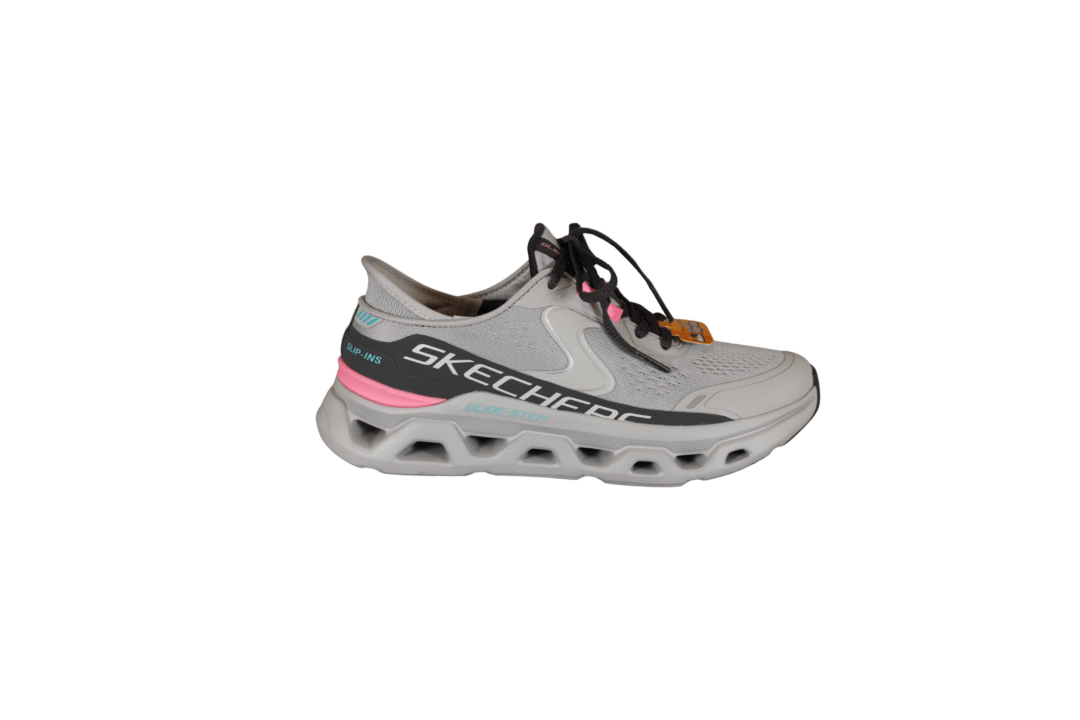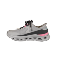 SKECHERS GLIDE STEP ALTUS 150510/gypk (035-034). Smart vegansk grå med pink detaljer på hælen, samt ved snørebåndene, Slip-Ins model. Inder sålerner er med Air-Cooled Memory Foam såler, så de er gode bløde at gå med. Glide Step er mellemsålen med stødabsorbering. Nem at hoppe i med Slip-Ins. Kan vaskes på lave grader i maskinen, derefter lufttørres. En god sko til daglig brug eller til traveturene. Meget let og fleksibel.