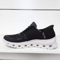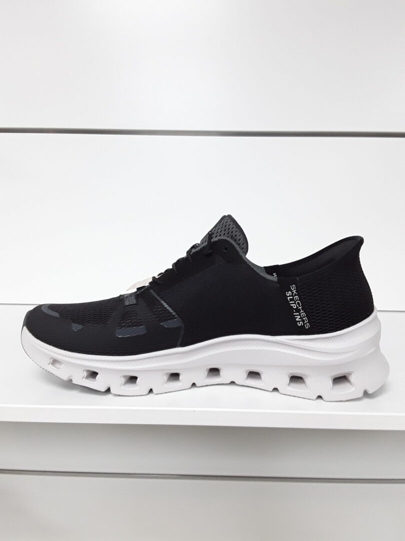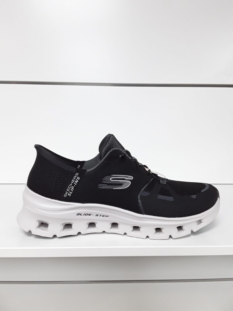 SKECHERS GLIDE STEP PRO 150420/BKCC (035-850). Smart vegansk Slip-Ins med elastik snørebånd. Inder sålerner er med Air-Cooled Memory Foam såler, så de er gode bløde at gå med. Glide Step er mellemsålen med stødabsorbering. Nem at hoppe i med Slip-Ins. Kan vaskes på lave grader i maskinen, derefter lufttørres. En god sko til daglig brug eller til traveturene. Meget let og fleksibel.