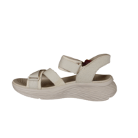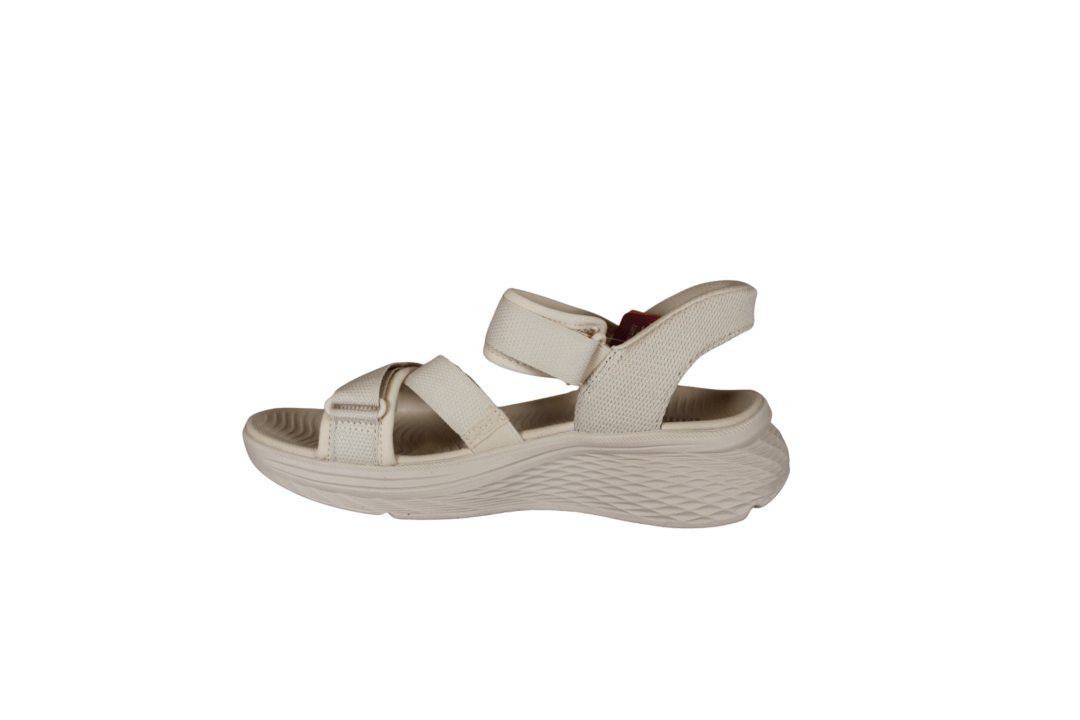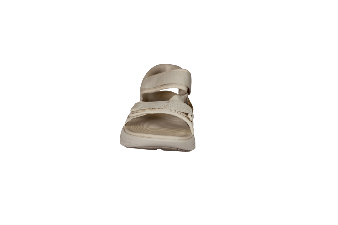 SKECHERS MAX CUSHNING ELITE 2.0 ZOE 141631/NAT (425-1265). God beige trave sandal med Slip-Ins, så du hopper lige i den uden brug af skohorn. Sandalen kan reguleres med de to remme over foden, hvor der er velcroremme. Sålerne er med Max cushioning, så der er rigtig god støtte i sålerne. I hælen er der en hæl pude, som er med til at holde foden på plads i sandalen. Sandalen kan vaskes på lave grader i maskinen, og derefter lufttørres.