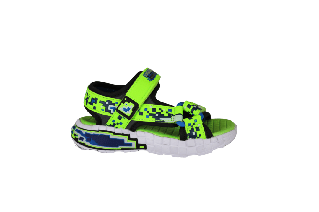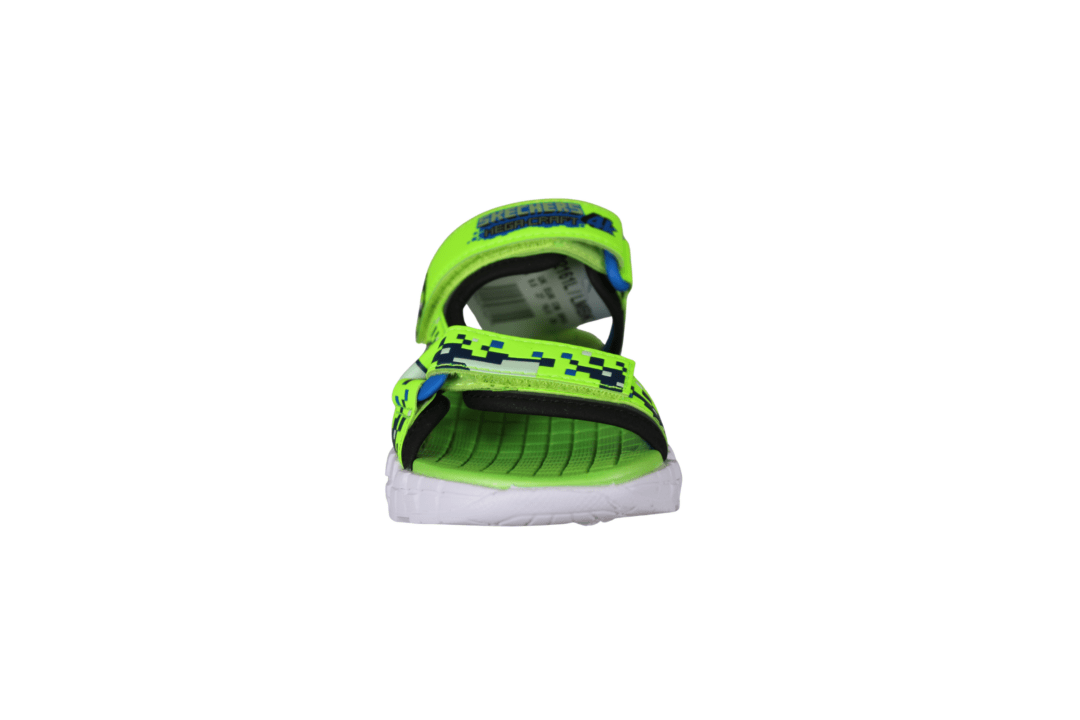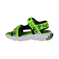 SKECHERS MEGA-SPLASH 4K 402161L/LMBK (481-0240). Lime farvet drenge sandal med Mega Craft. Indersålerne er polstret, så sandalen er blød at gå med. ydersålerne er en pu sål, så sndalen er meget let. Nem at komme i med en velcro rem over forfoden, samt over vristen. Kan bruges i vandet.