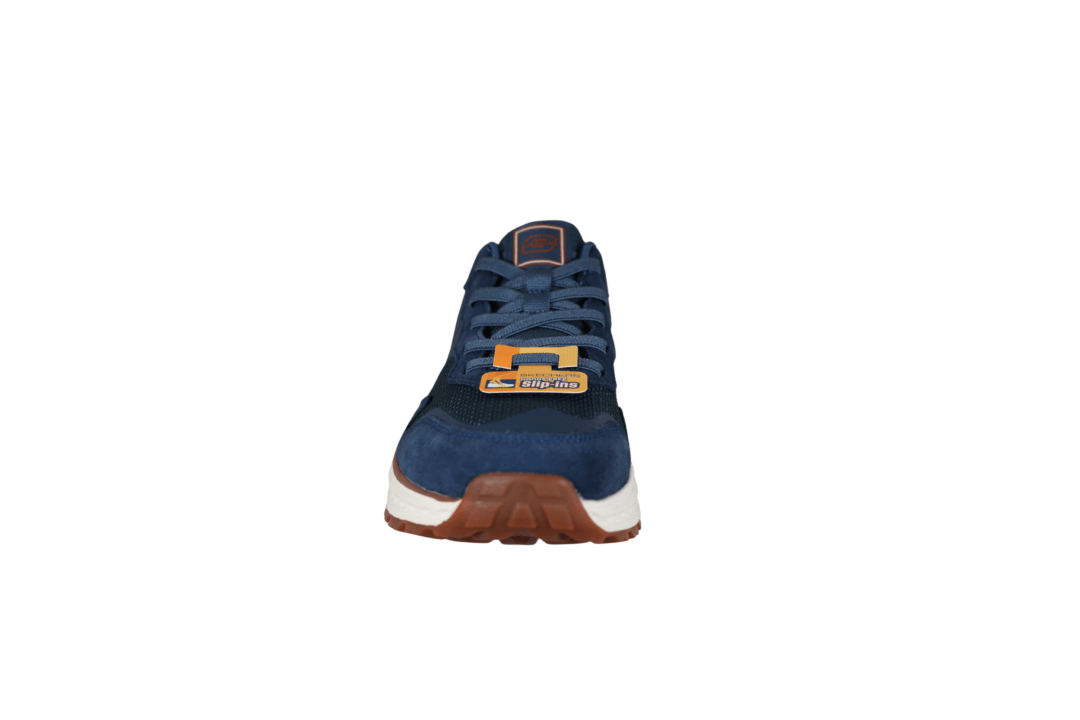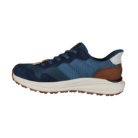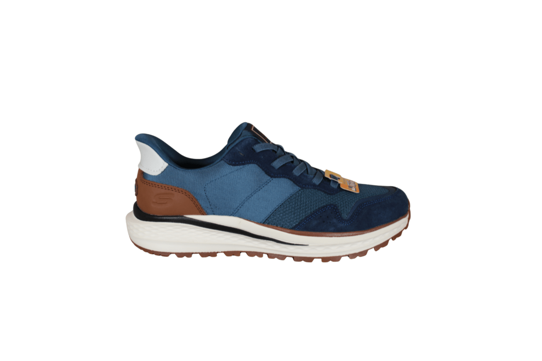 SKECHERS SLADE ULTRA 211069/BLU (741-3488). Blå sneakers med brune detaljer på hælen og langs sålen. Indvendig er der en memory foam sål, med svangstøtte indbygget. Materialet er skind og tekstil udvendig. Der er en ekstra slidsål under skoen, som giver et bedre greb.