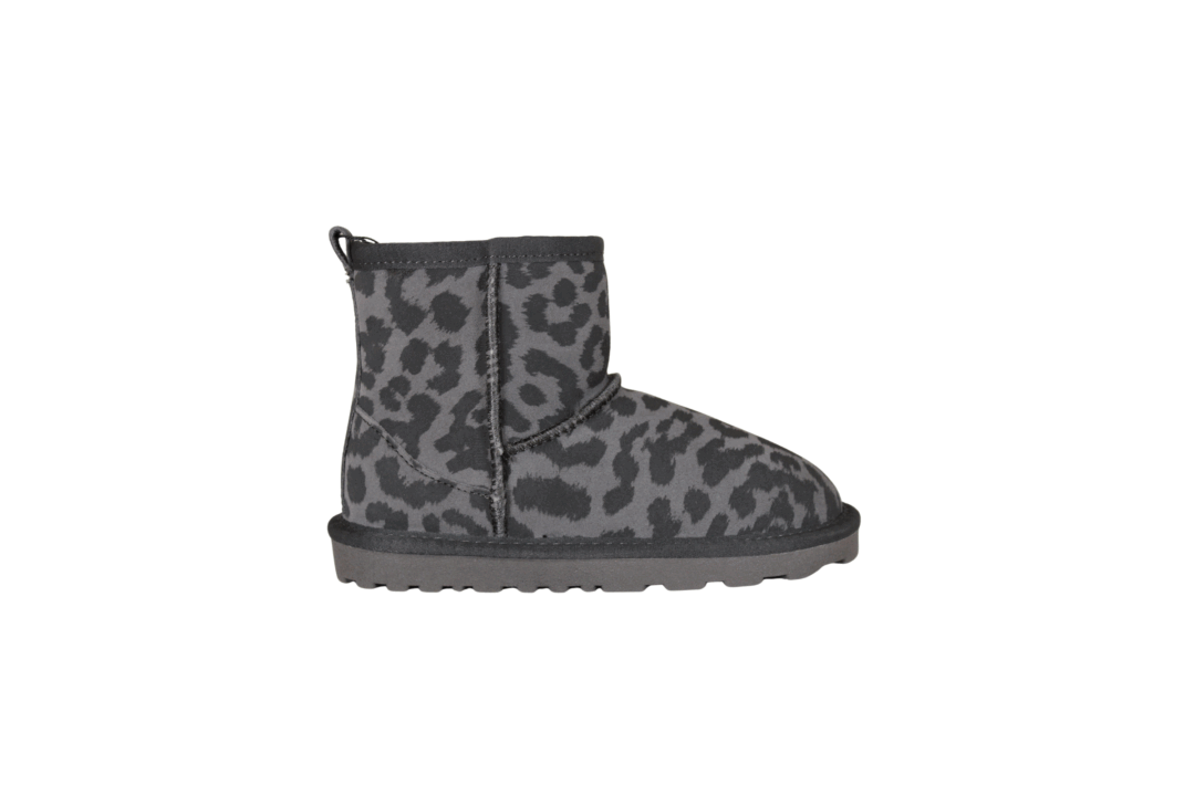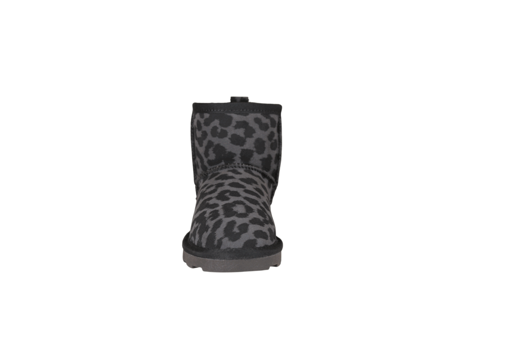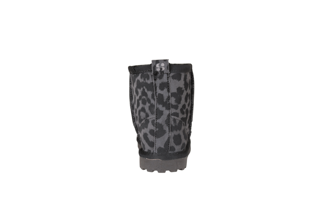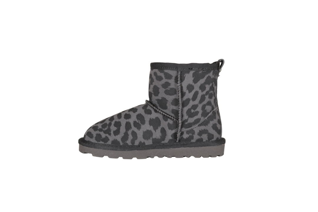 SOFIE SCHNOOR G253803 GREY LEOPARD 9085 (562-0943). Grå bamsestøvle med leopard print i mellem højt skaft. Støvlen er god foret med sort tekstil foer. Udvendig er støvlen skind (ruskind) – skindet har fået behandling hvilket gør den kan holde lidt vand ude (IKKE vandtæt). Ydersålen er lavet i gummi. Støvlen er lille i str. så vi anbefaler at gå en str. op.