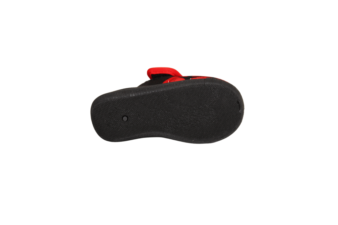 SPIDER-MANN SP014245 RØD/SORT (661-417). Sort og rød Spiderman med en velcro rem over vristen. Spiderman og røde lys på forstykket. En meget let og fleksibel drenge hjemmesko, med en gummisål, så man står fast.
