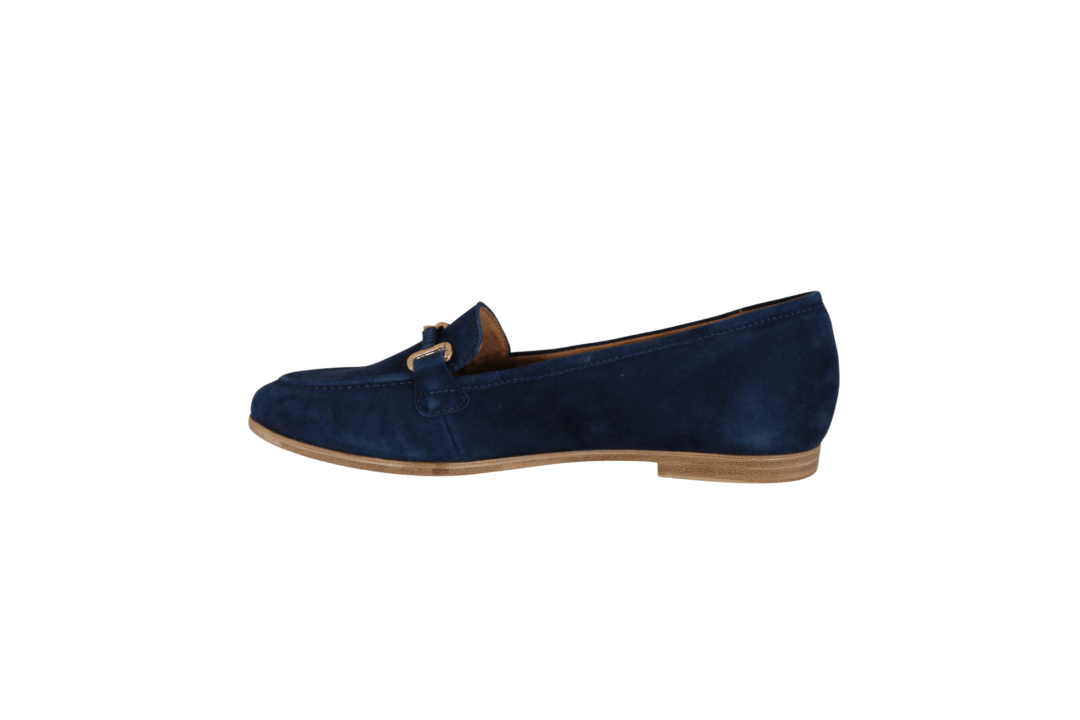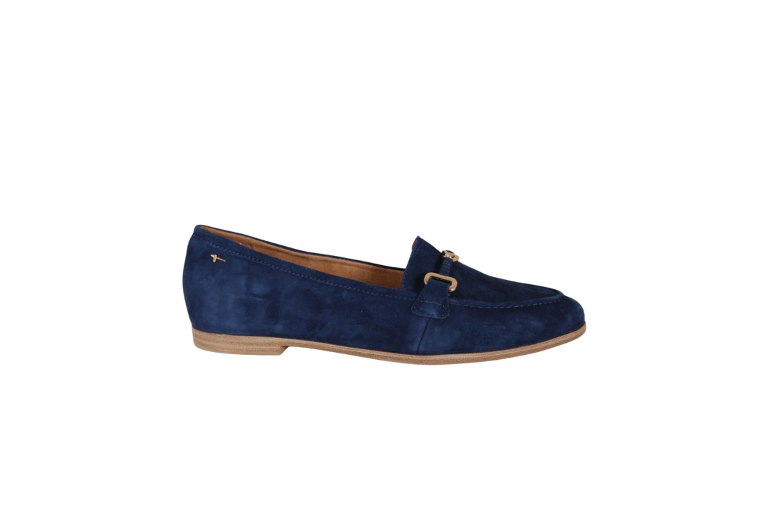 TAMARIS 1-24240-44 800 BLUE (241-1876). Let loafers i blødt materiale. Skoen er lavet i skind udvendig, og foret med vegansk indvendig. Hen over vristen er der en guld bidsel, samt en lille mocassin syning ude langs snuden. Indvendig sål er den bløde touchIT sål, der er dejlig blød at gå på. Flot blå der kan matche flere farver, for at friske sættes lidt op.