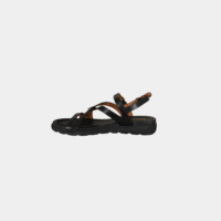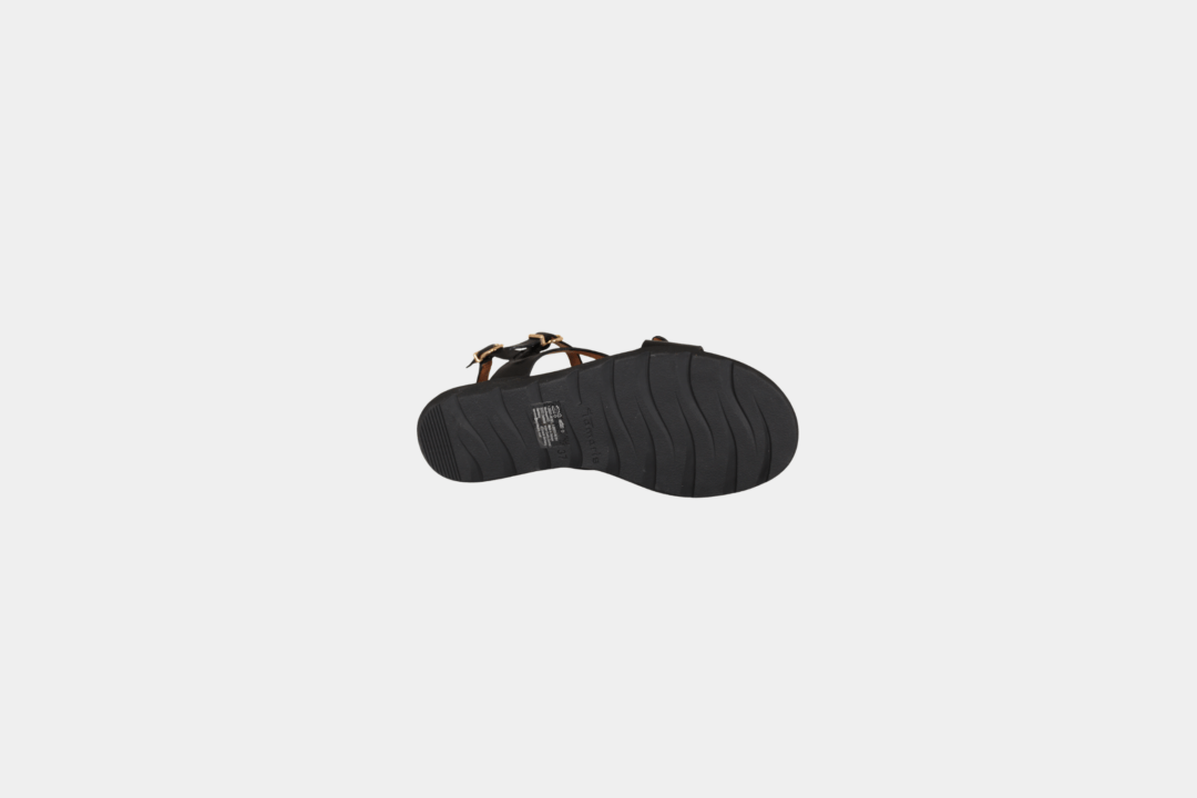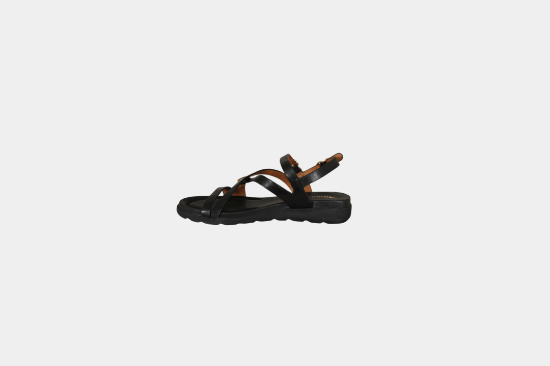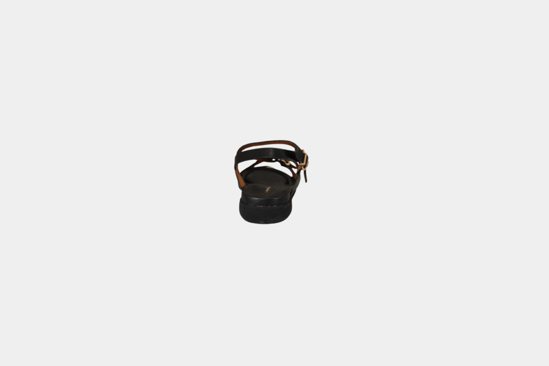 TAMARIS 28231-46 (421-1723). Sort skind sandal med en lille kilehæl på ca 3,5 cm. Indersålerne er polstret, så sandalen er blød at gå med. Ydersålen er en gummisål. Modellen kan reguleres tre steder, ved forfoden, over vristen, samt i hælen. Fin og let med de tynde remme, god til fest eller til daglig brug.