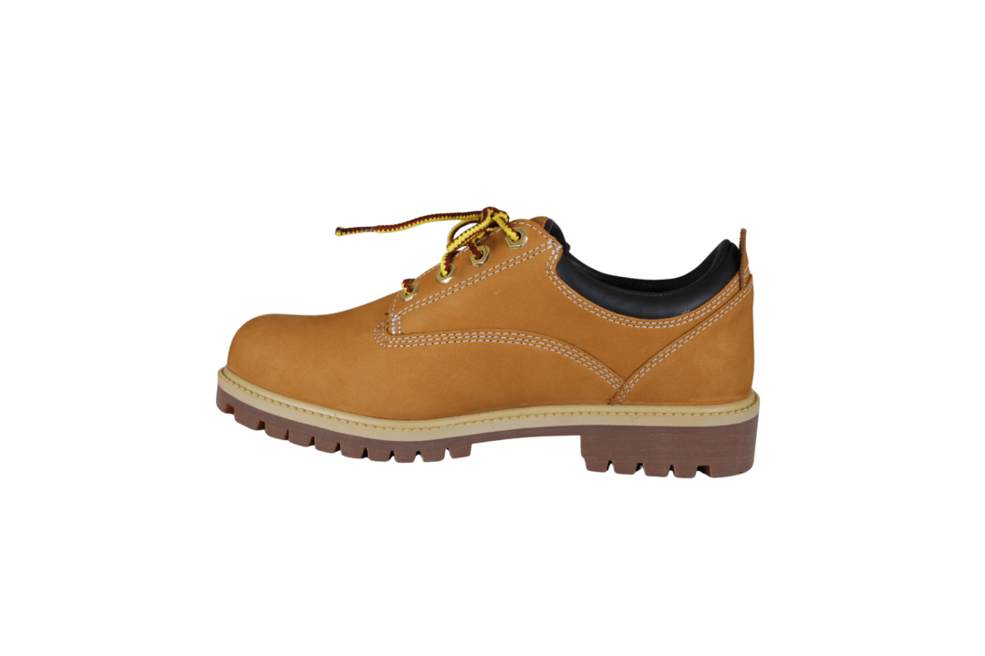 TIMBERLAND OA5S9W 754 LACE UP SHOE (163-0624). Skoen er lavet i skind (nubuck). Skoen kan soændes fast til foden med snørebånd i farverne gul og brun. Indvendig er skoen foret med tekstil. Slidsålen er en grov brunlig gummisål. Smart til ethvert outfit.