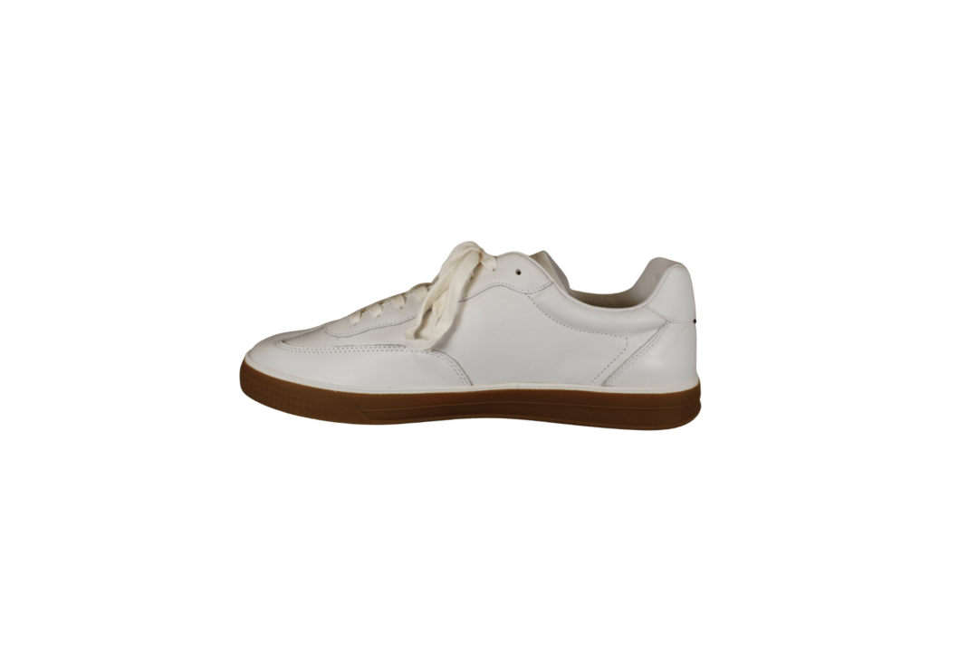 TOMMY HILFIGER FM0FM05815 TH LO LUX LTH (005-149). Hvid sneakers med naturfarvet gummi sål. Materialet er skind udvendig, samt dæksålen indvendig. Foringen er lavet i tekstil. På ydersiden af skoen står der “TOMMY HILFIGER” med guld skrift. På hælkappen er der et lille TH logo.