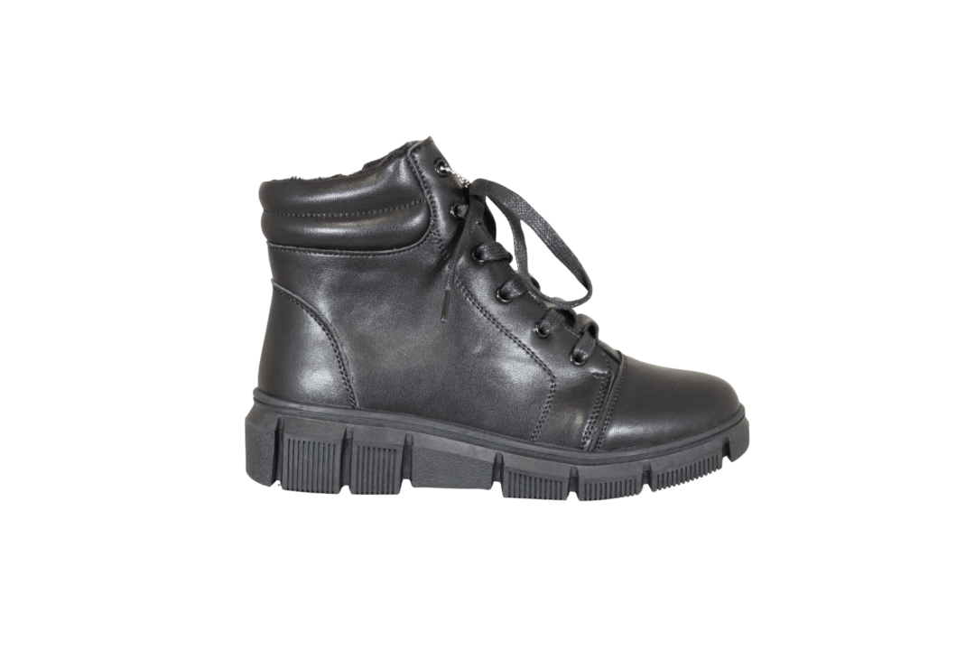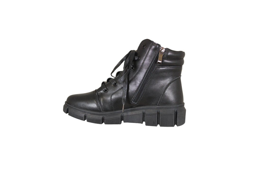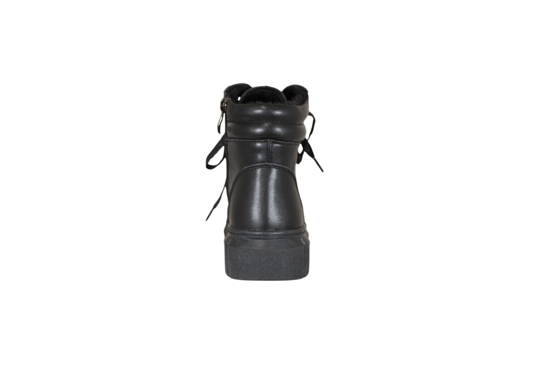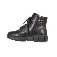 TOPWAY B0016364 BLACK (054-826). Helt klassisk sort vinterstøvle fra TOPWAY. Skoen er lavet i skind udvendig, og foret med tekstil indvendig. Støvlen har både snørebånd, og lynlås på indersiden. Smart sneakers med lidt højere skaft, men har stadig en god varme til vinter. Ydersålen er en sort chunky sål.