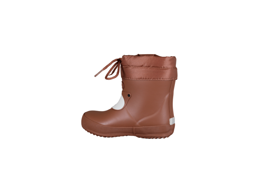 VIKING ALV INDIE PRINT 1-16010-58 COGNAC (069-386). Cognac farvet gummistøvle til de små størrelser – på forbladet er der et bamse hoved. Støvlen er lavet i natur gummi. Øverst på skaftet sidder en snørebånd, der kan justeres ind til benet. Dejlig blød og fleksibel gummi støvle, der både kan bruges til drenge og piger.