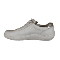 WALDLÄUFER 612003 299 663 K-MILENA (032-825). Hvid let og fleksibel sommer sko med rigtig god bredde. Pasformen har vidde K, så tæerne ikke bliver klemt. Skoen har både elastik snørebånd og lynlås i siden – snørebåndet kan udskiftes med almindelige snørebånd. Materialet er skind udvendig, samt foringen også er skind – god åndbarhed i skoen. Indlægssålen er polstret med tekstil. Slidsålen er lavet i gummi.