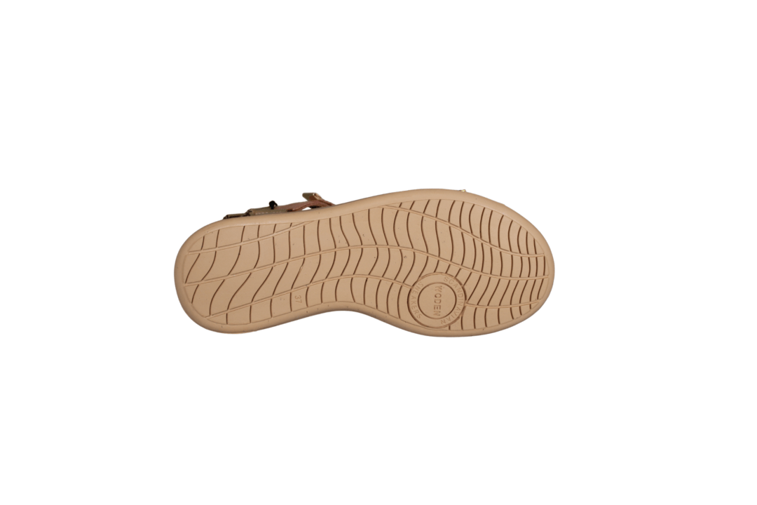 WODEN LINE WL926-536 BLUSH MULTI (425-1249). Smart lys sandal med forskellige nuancer af rosa og en beige sål. Sandalen har tre justerbar velcro remme, som kan reguleres efter foden. Foden ligger i en fodskål, så foden hviler godt i sandalen. Sålerne er lavet af genbrugs materiale. En god sandal til hverdag og fest.