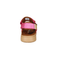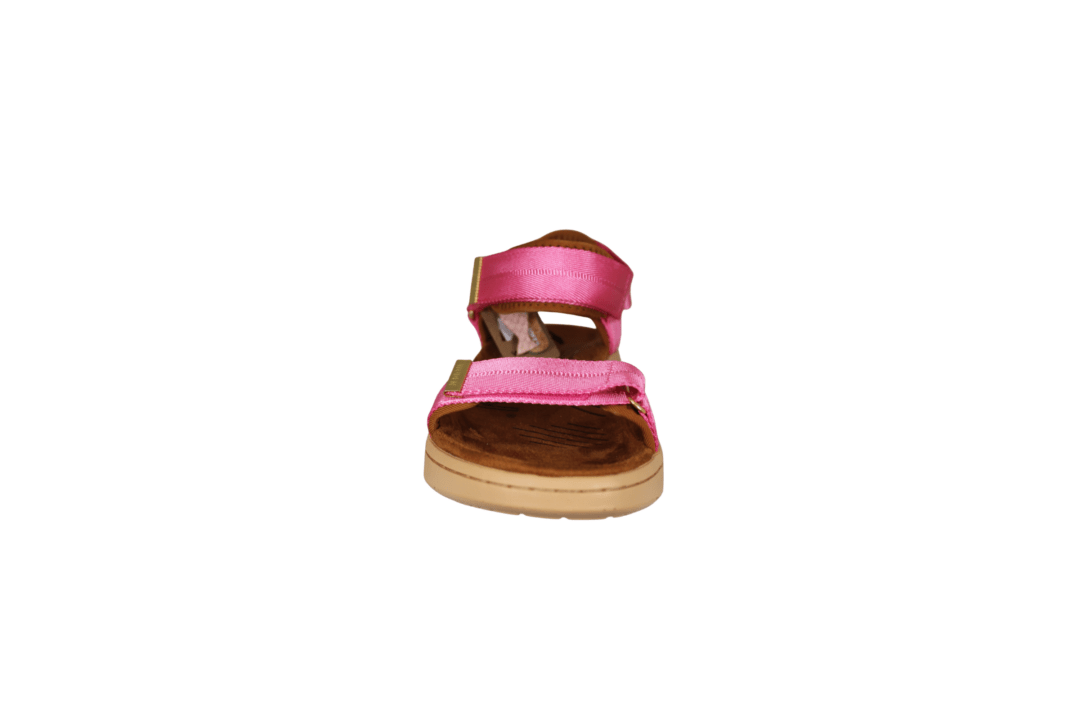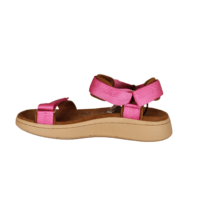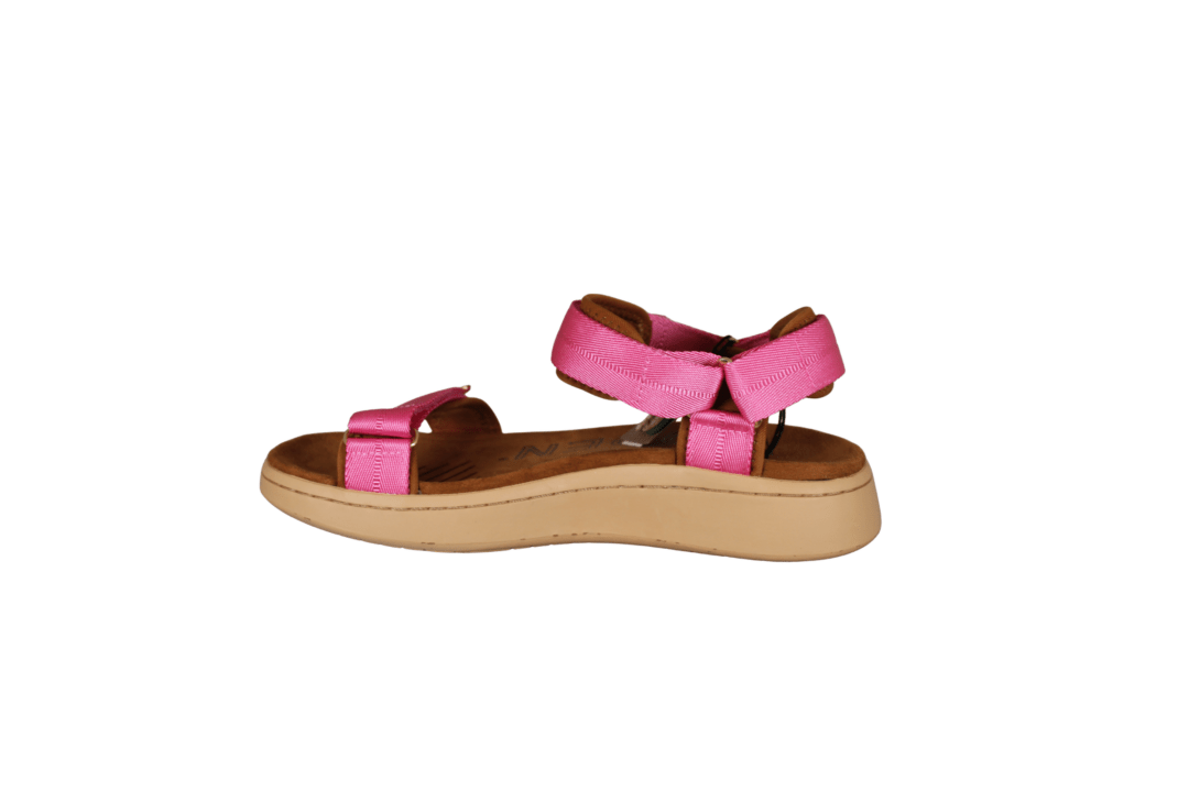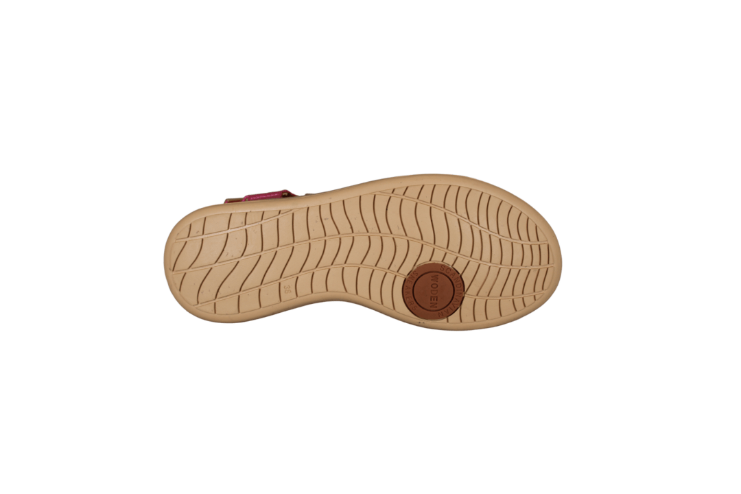 WODEN WL925-144 AURORA PINK (425-1269). WODEN sandal i en flot pink med brun inderforing og sål. Sandalen har de lækreste bløde såler. Foden ligger godt nede i en fodskål ved gang. Sandalen har 3 justerbar remme, som kan justeres godt til foden. Materialet er lavet i tekstil. Smart detalje med guld på velcro remmene. En god sandal til hverdag og fest.