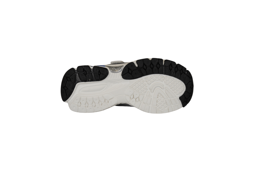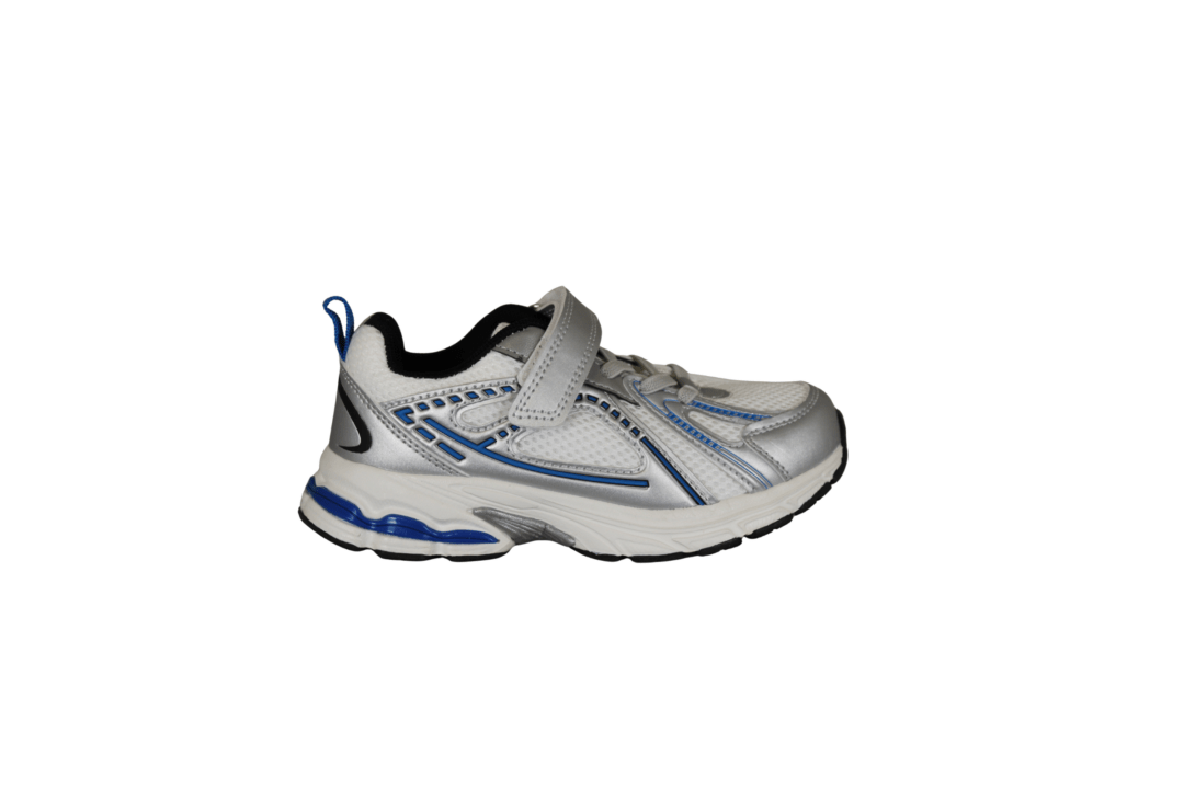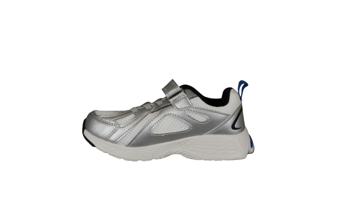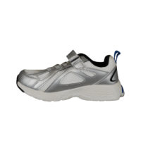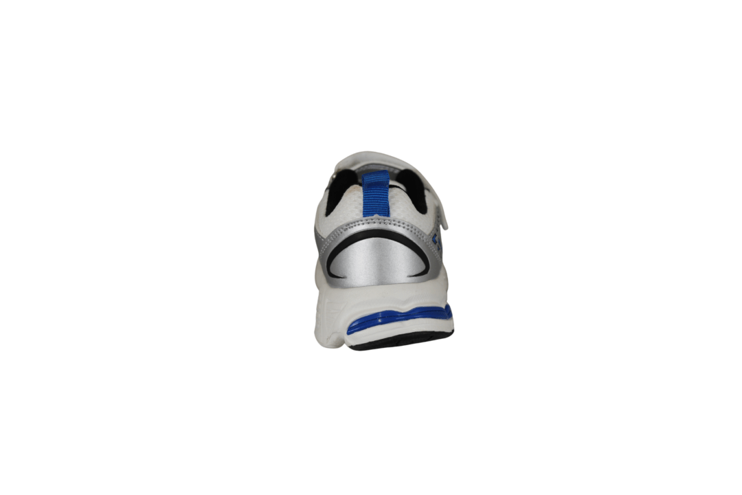 ZIGZAG Z262379 (741-3782). Smart sneakers til drengene eller til pigerne, sølv, hvid og med cobolt blå. Nem at hoppe i med en rem, med velcro under, samt elastik snørebånd. Indersålerne er polstret, så skoene er bløde at gå med. Ydersålerne er lavet i PU skum med ekstra slidstykker i siderne af sålen.
