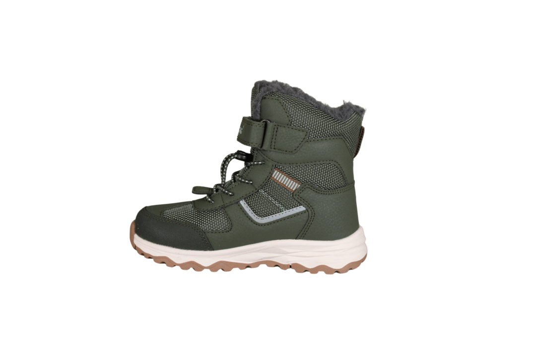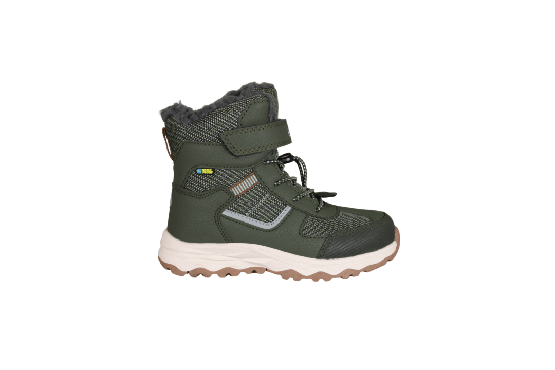 ZIGZAG BALFUL KIDS BOOT Z244391 (562-0947). oliven grøn børne vinterstøvle, som er med Waterproof, (100% vind- og vandtæt). Nem at komme i med elastik snørebånd og en velcrorem, så støvlen sidder godt på foden. Inder sålener kan tages op og skiftes. Refleks på siden, så man kan ses. En god støvle til de dage det er koldt.